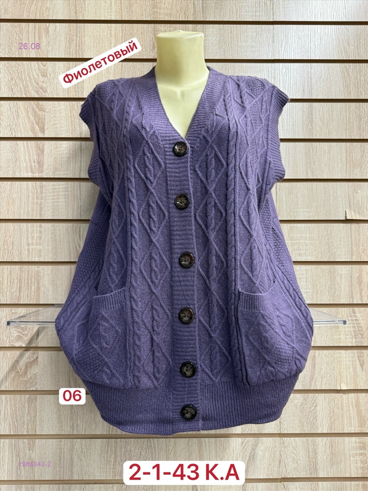 Жилет Женский Вязаный Состав 52% CASHMERE, 28% WOOL, 15% COTTON, 5% ELASTANE, ОГ 120см, Длина 70см