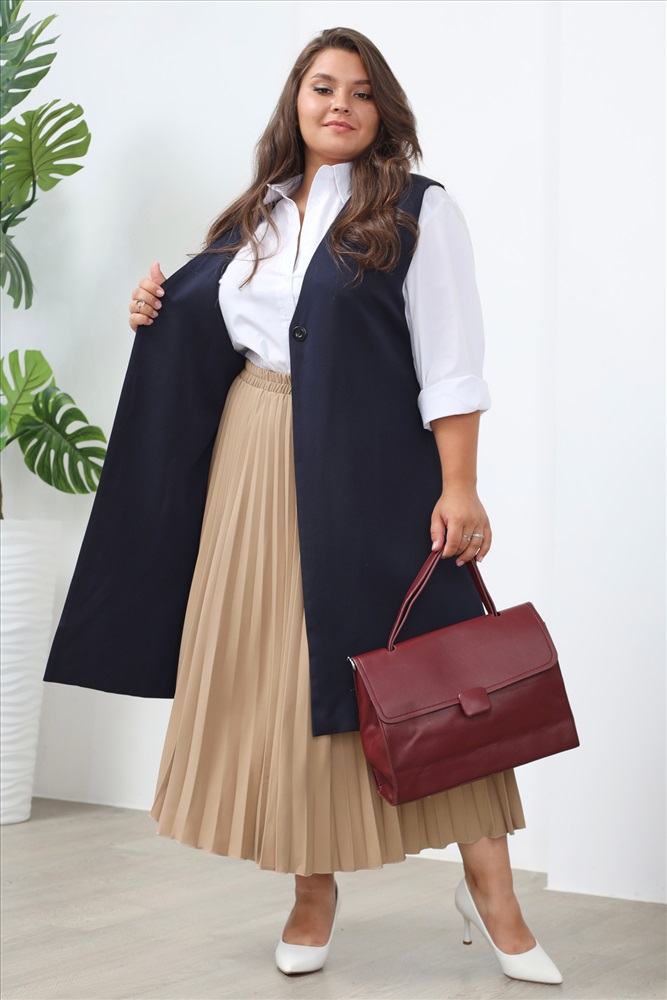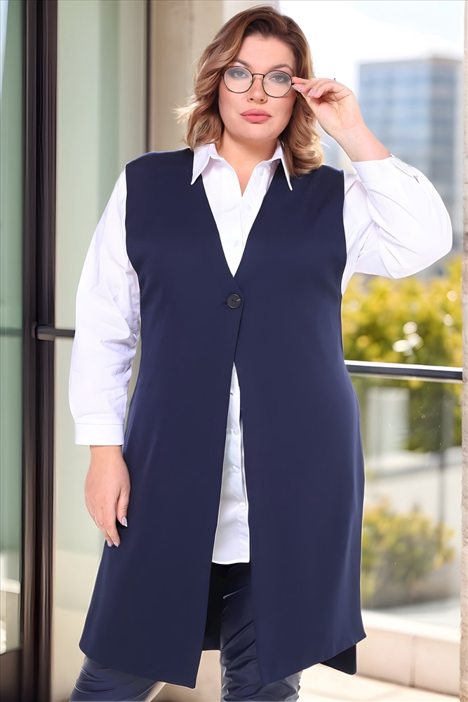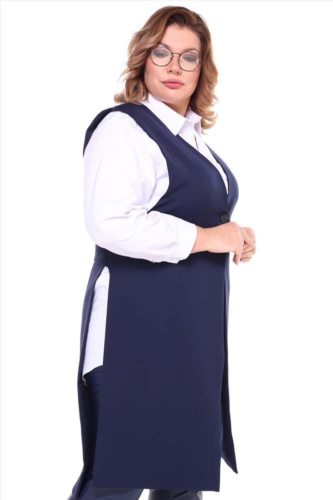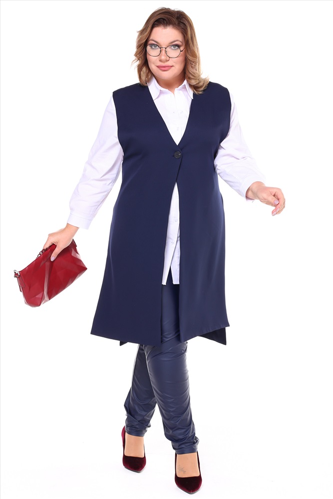 Элегантный стильный жилет выполнен из мягкого материала без подкладки. Удлиненная модель прямого силуэта имеет глубокий V-образный вырез. Застегивается модель на оригинальную пуговицу. Широкий хлястик по спинке и глубокие разрезы по бокам способствуют оптимальной посадке по фигуре. Жилет станет прекрасным дополнением для женского гардероба на каждый день.