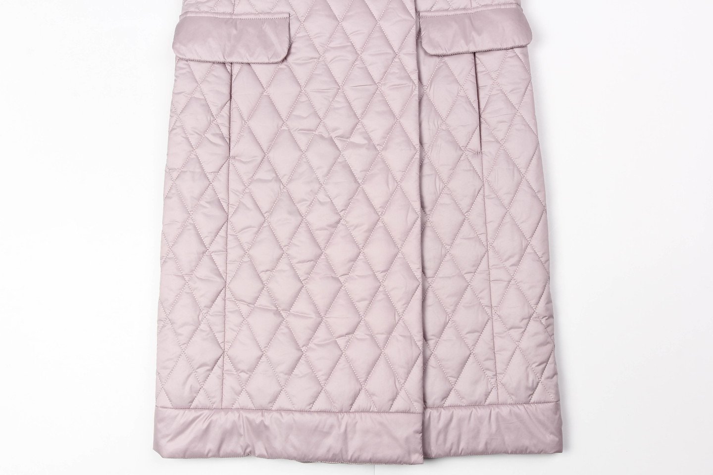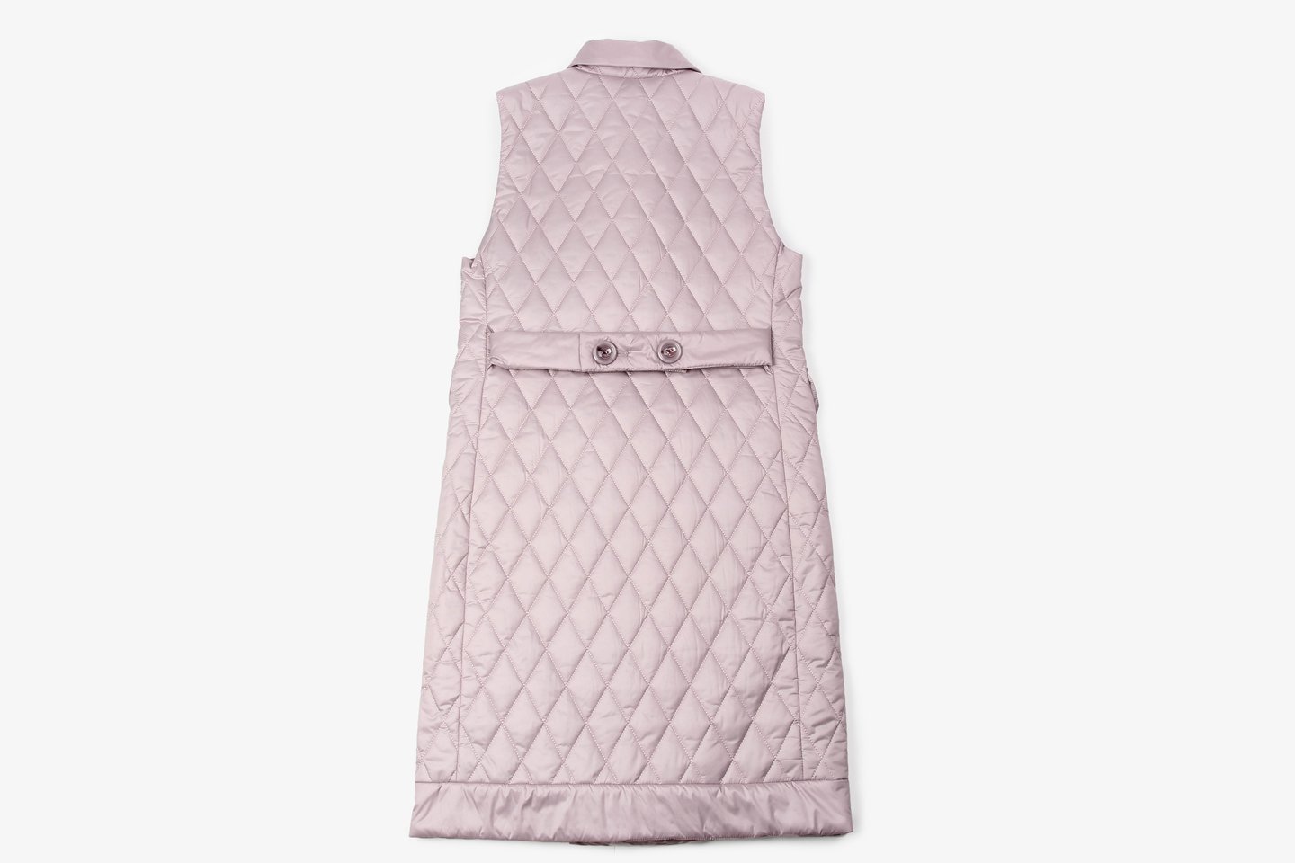 Теплые женские жилеты — не новый тренд, тем не менее его популярность усилилась, благодаря универсальности, практичности этой одежды среди других фасонов. Удлиненный жилет из стеганой ткани смотрится стильно и будет согревать вас в холодную погоду. Жилет прямого силуэта с английским воротником. Застежка двубортная на петли и пуговицы. Спереди карманы в швах и декоративные клапаны. На спинке – декоративный пояс на пуговицах. «Изюминку» в модель вносит сочетание стеганой ткани и деталей из гладкой ткани. Утеплитель термофин, плотность 100.