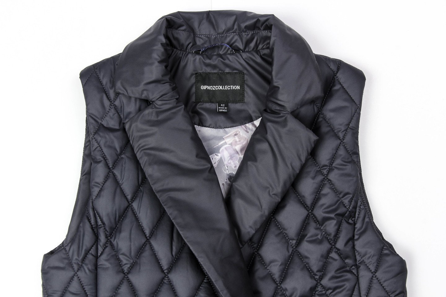 Теплые женские жилеты — не новый тренд, тем не менее его популярность усилилась, благодаря универсальности, практичности этой одежды среди других фасонов. Удлиненный жилет из стеганой ткани смотрится стильно и будет согревать вас в холодную погоду. Жилет прямого силуэта с английским воротником. Застежка двубортная на петли и пуговицы. Спереди карманы в швах и декоративные клапаны. На спинке – декоративный пояс на пуговицах. «Изюминку» в модель вносит сочетание стеганой ткани и деталей из гладкой ткани. Утеплитель термофин, плотность 100.