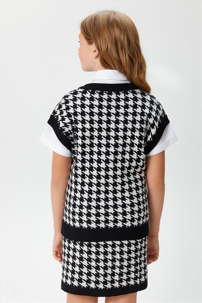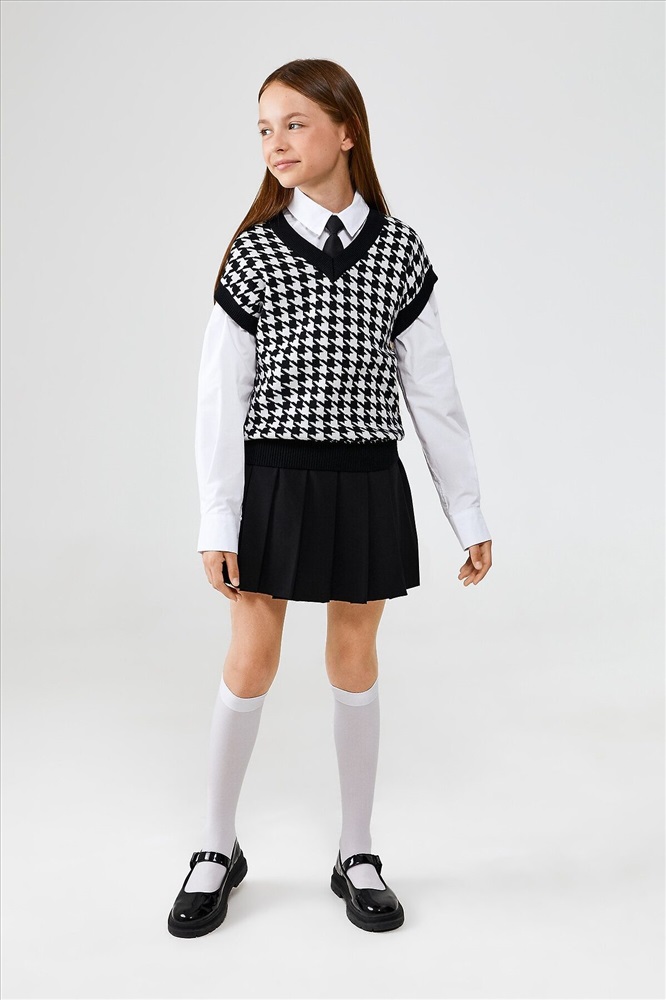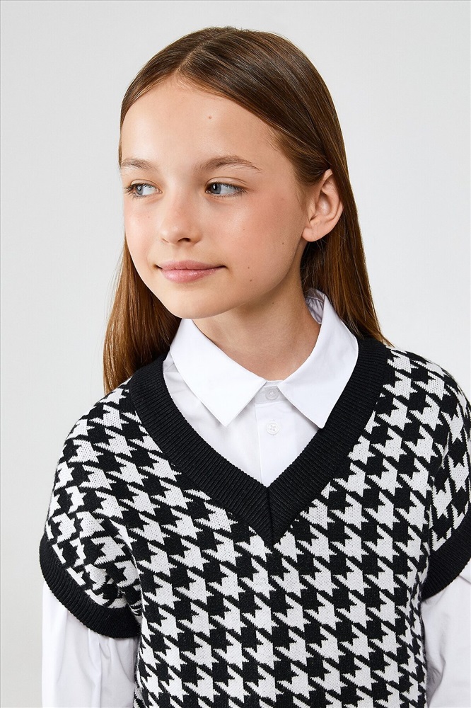 ID товара: 1039685 Состав: 51% Вискоза, 26% Полиэстер, 23% Полиамид Сезон: Осень/Зима Длина: Средняя Фасон: Прямой Рукав: короткие Вырез горловины: V-образный Рисунок: Гусиная лапка Основная ткань: Вискоза Стиль: классический Страна бренда: Россия Страна производства: Китай Жилет детский для девочек Jimmy черно-белый Комментарии к товару