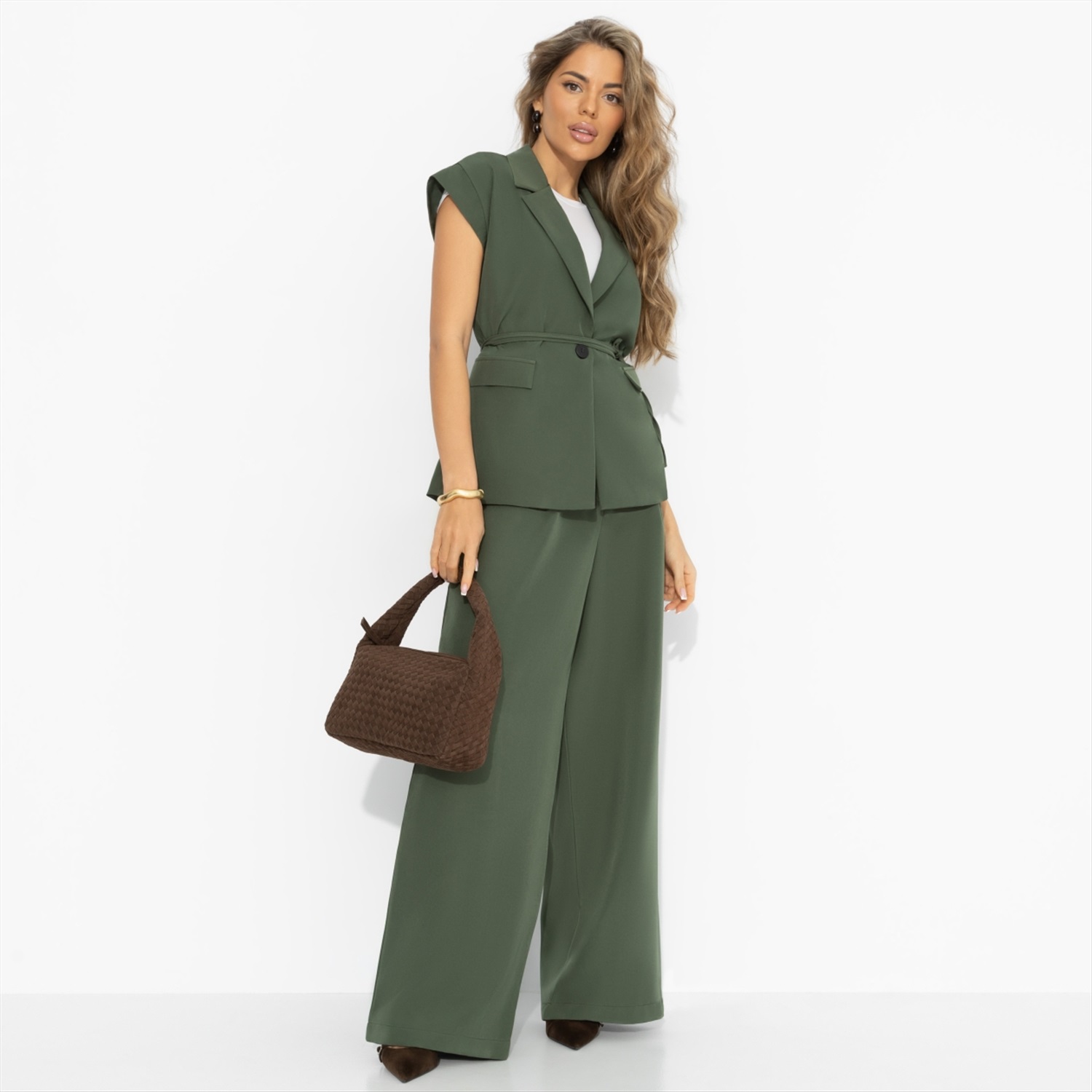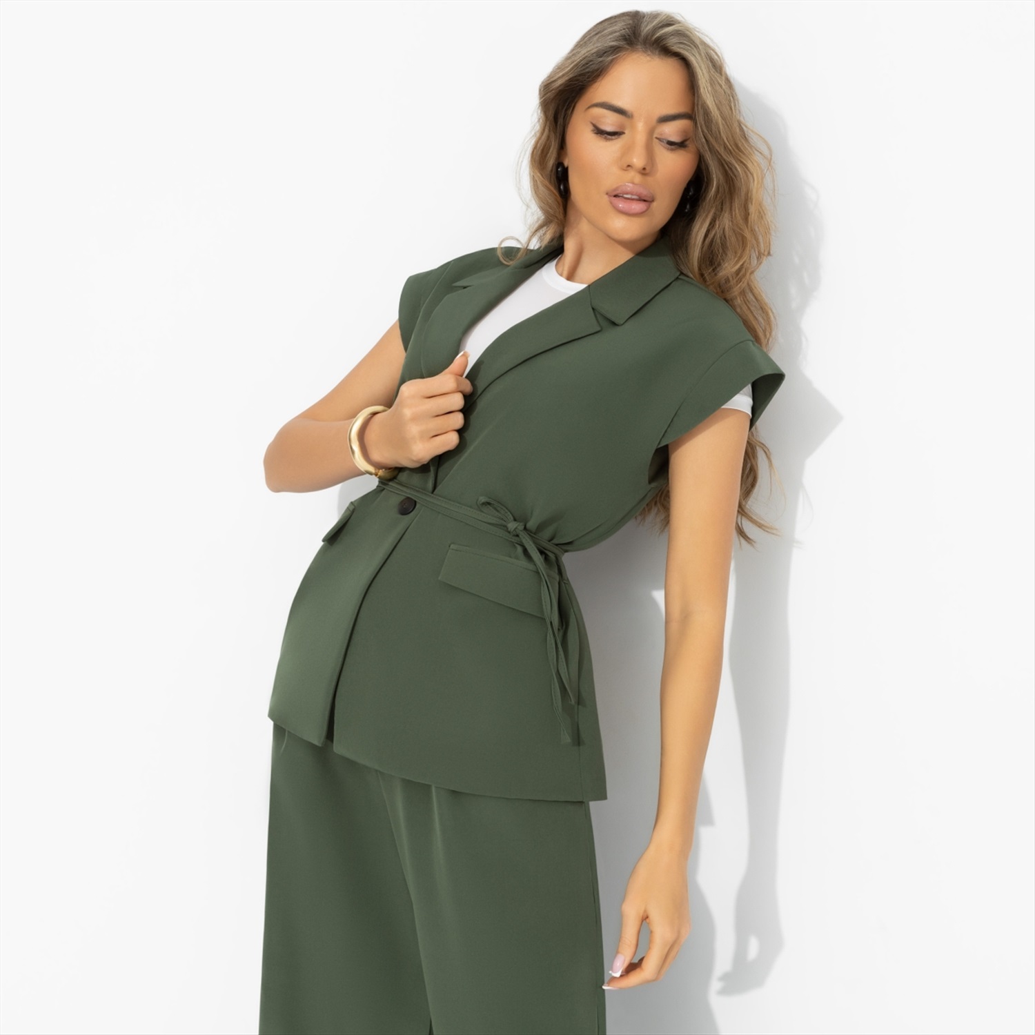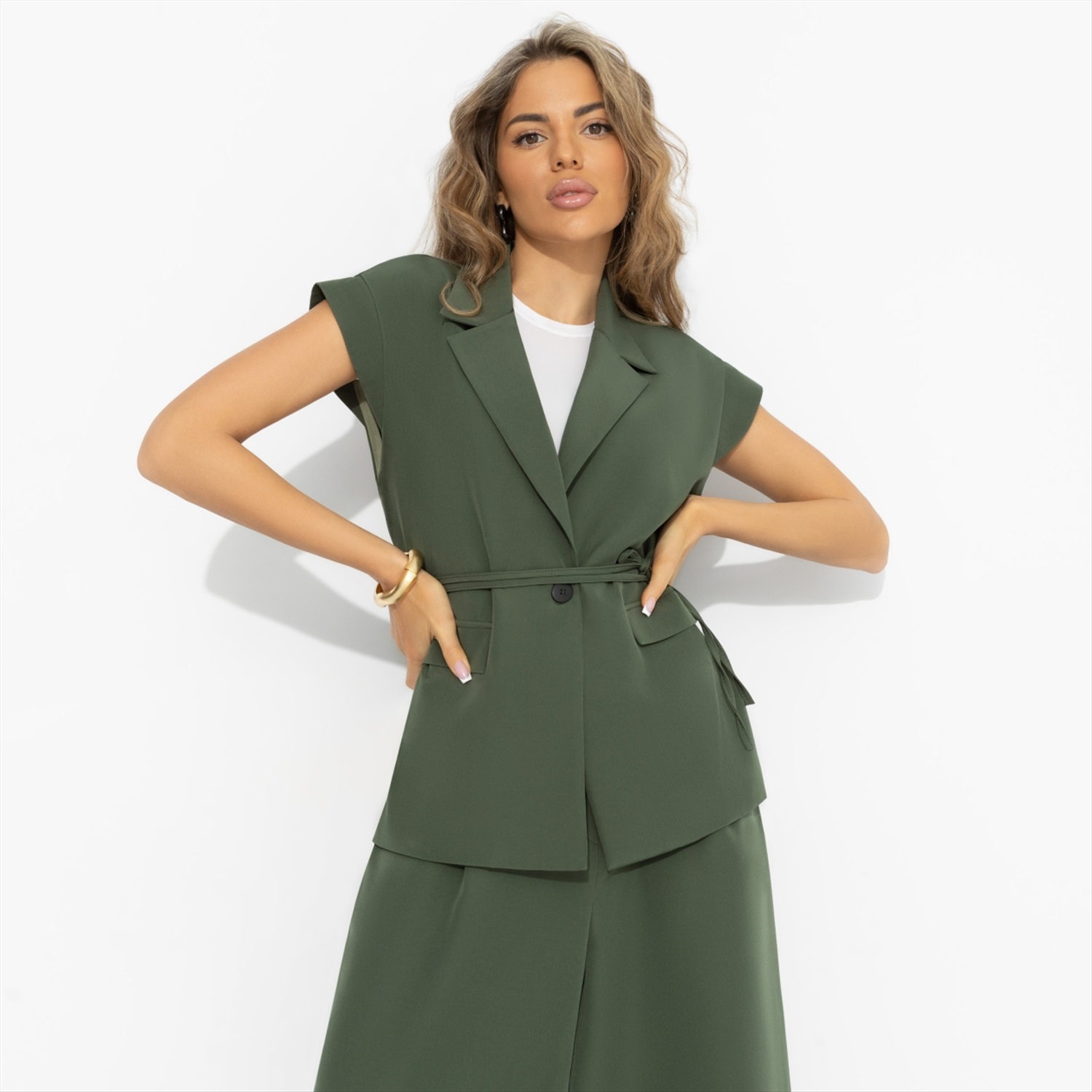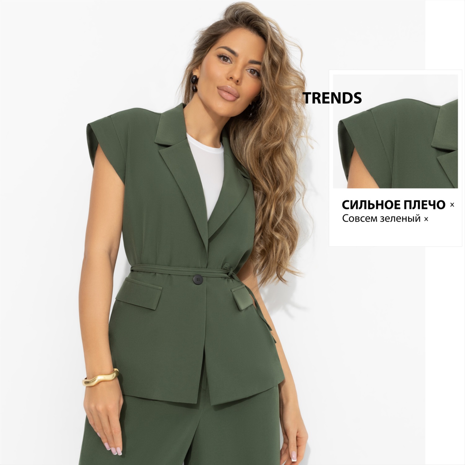 Бывает ли у одежды магия? Отвечаем: «да», и она зелёного цвета. Оттенок жилета чарует, линия плеч собирает восторги, а пояс подчёркивает талию. Надела – и эффект «слишком модно» включился сам. Жилет выполнен из пластичной ткани, красиво держит форму и мягко повторяет движения. Свободный крой балансируется поясом – можно носить приталенно или расслабленно. Идеален в комплекте с брюками, джинсами или поверх платья. Ткань приятна к телу и комфортна в течение дня.