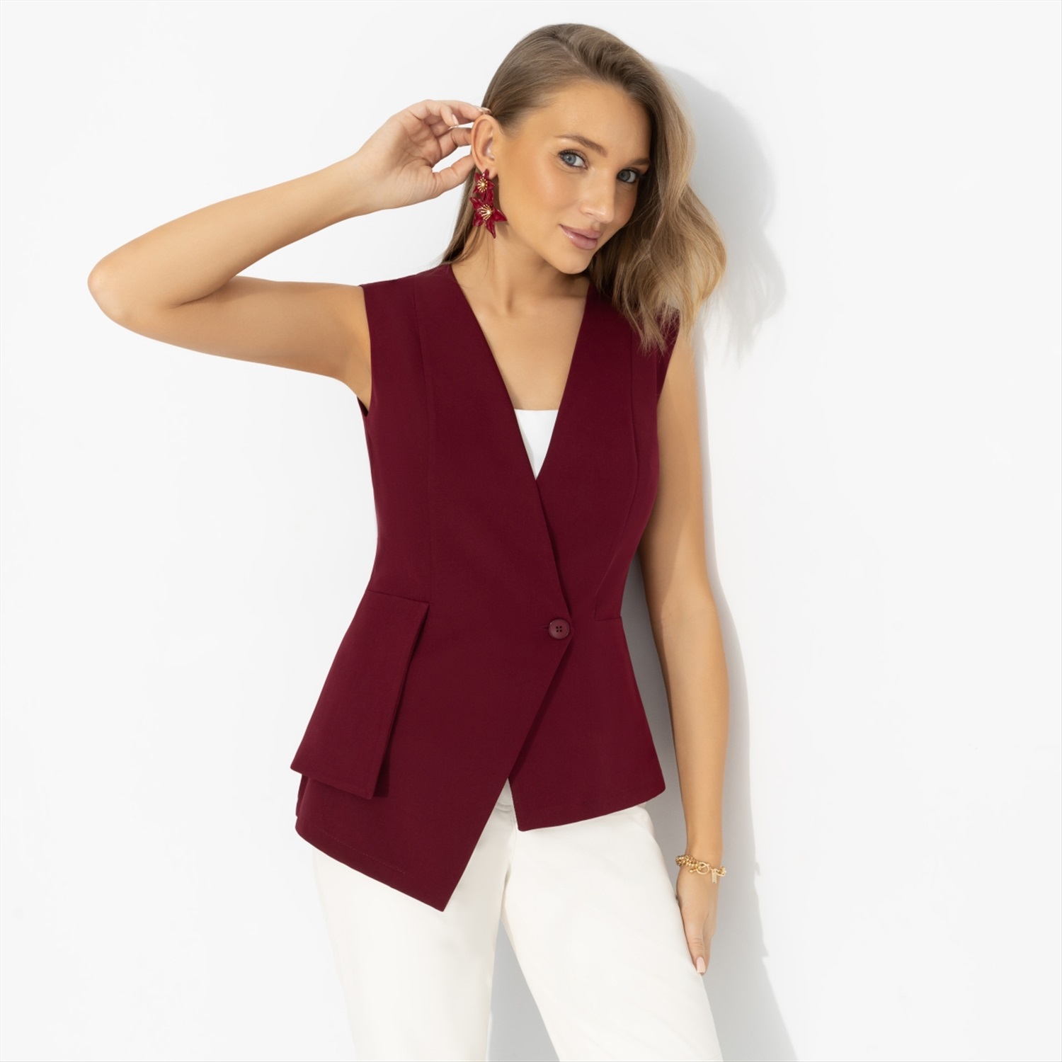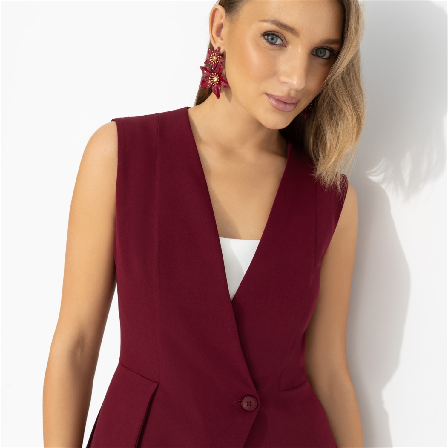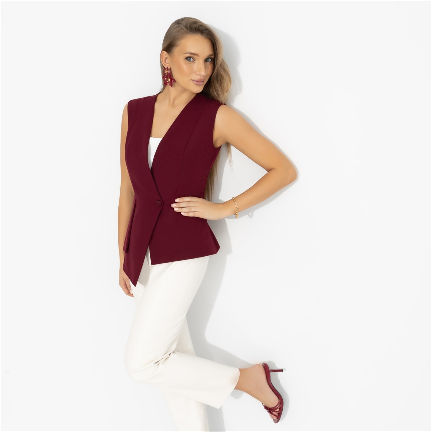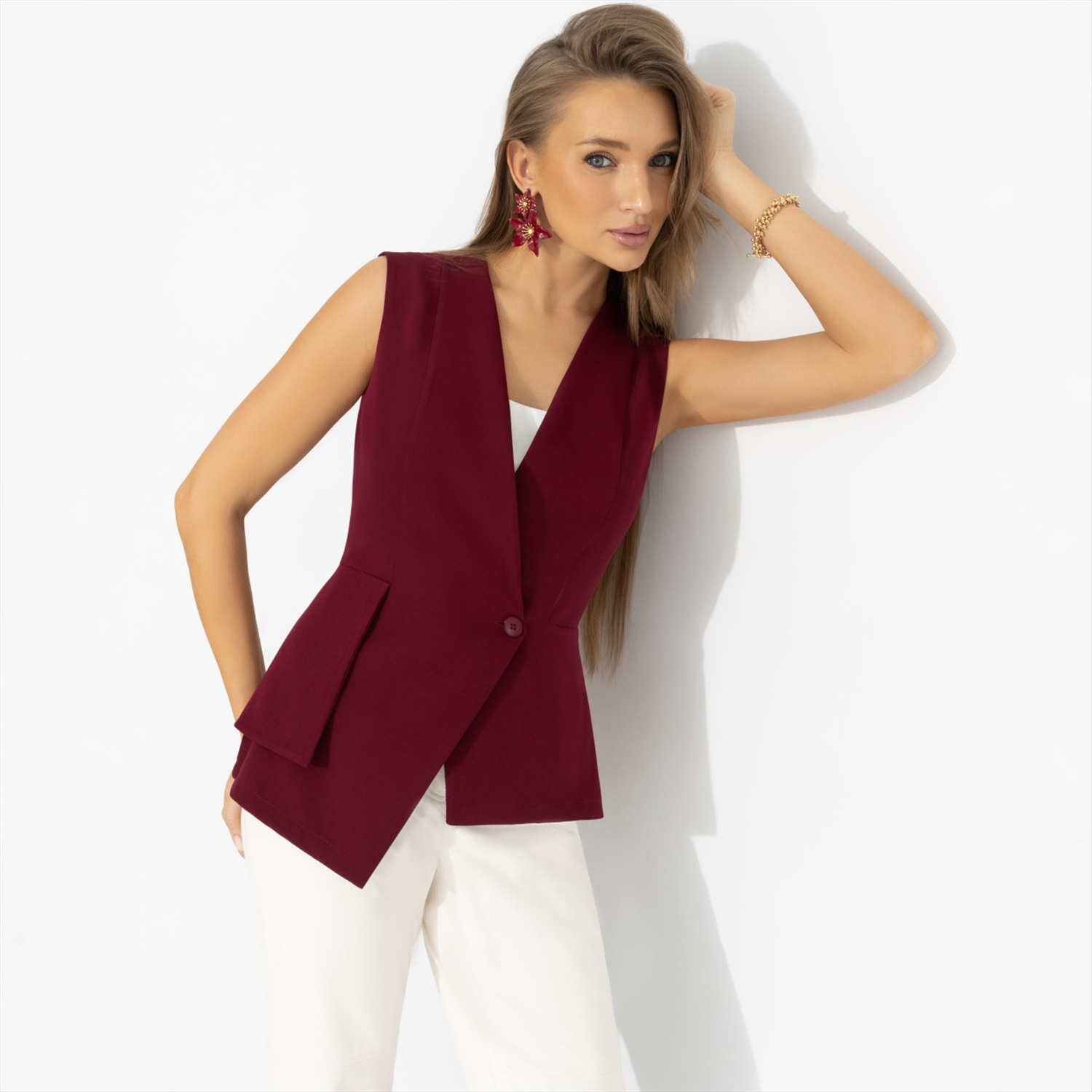 Это не просто бордовый – это цвет «и пусть вспыхнет пламя». В нём есть дерзость Китнисс Эвердин: не ради шоу, а ради победы. Жилет собирает талию, линия плеч четкая, асимметричный низ добавляет динамики. Ткань держит форму так же уверенно, как ты остаёшься при своих убеждениях. Никаких лишних слов, только действие. Лидерство здесь не назначают – его берут. И желательно сразу. Комментарии к товару