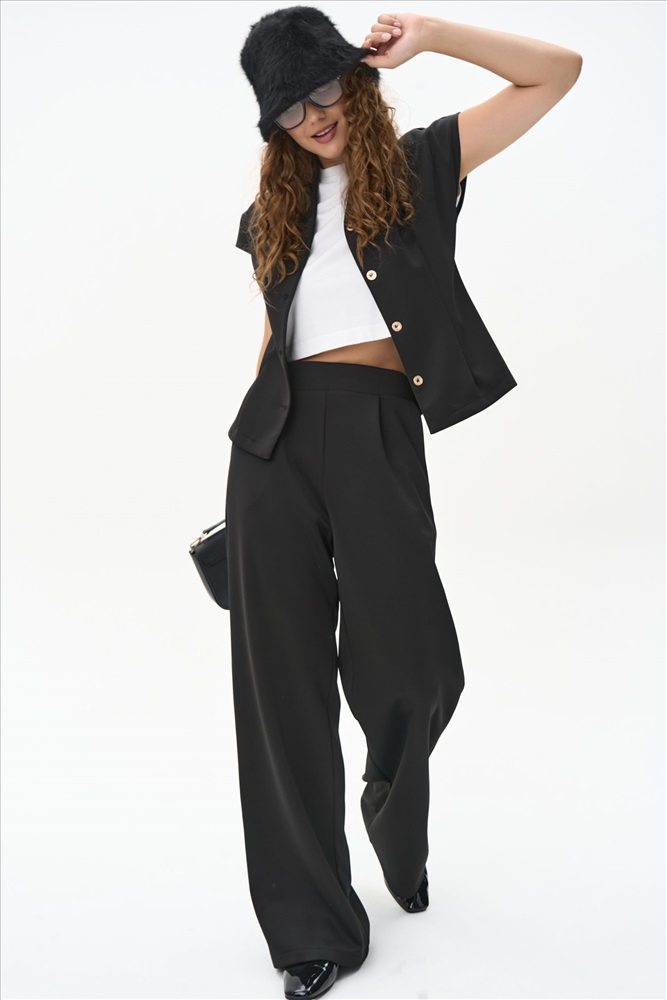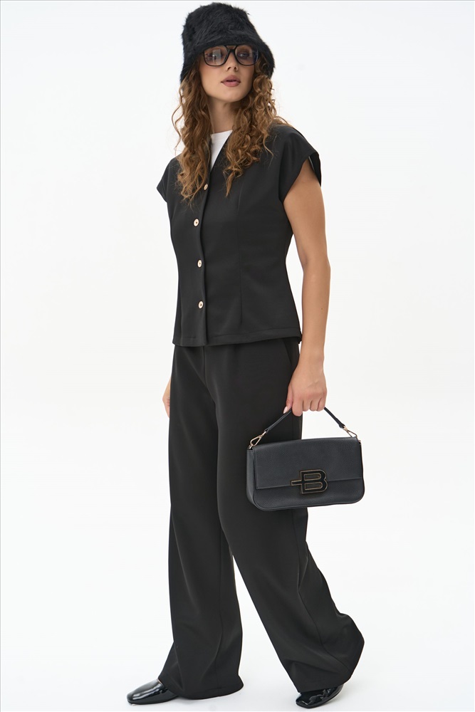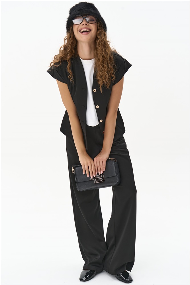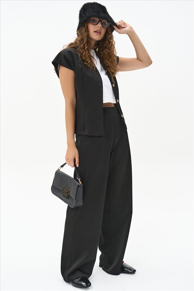 Позвольте представить вам настоящий must-have сезона – наш элегантный костюм который станет неотъемлемой частью вашего гардероба. Почему именно этот костюм? Давайте разберёмся. Во-первых, он выполнен из приятной костюмной ткани, что сразу придает ему роскошный вид. Вас точно заметят. Элегантный комплект состоящий из жилета и широких брюк – идеальный вариант для разных событий и мероприятий. Но самое главное – это его способность легко интегрироваться в любые сочетания с любыми вещами из гардероба.