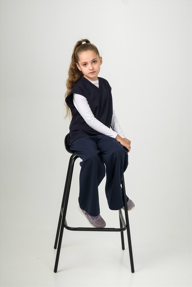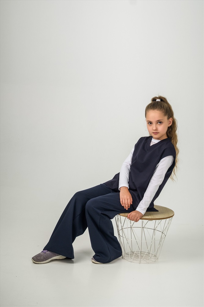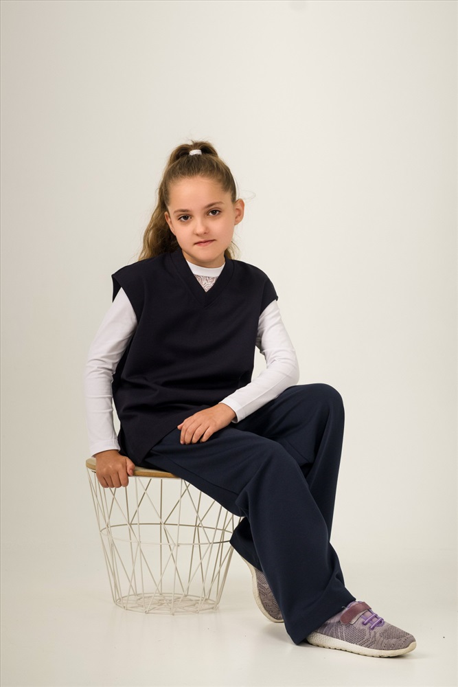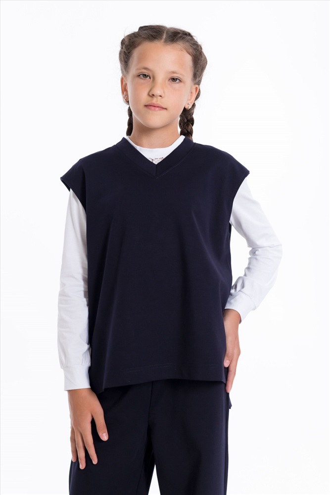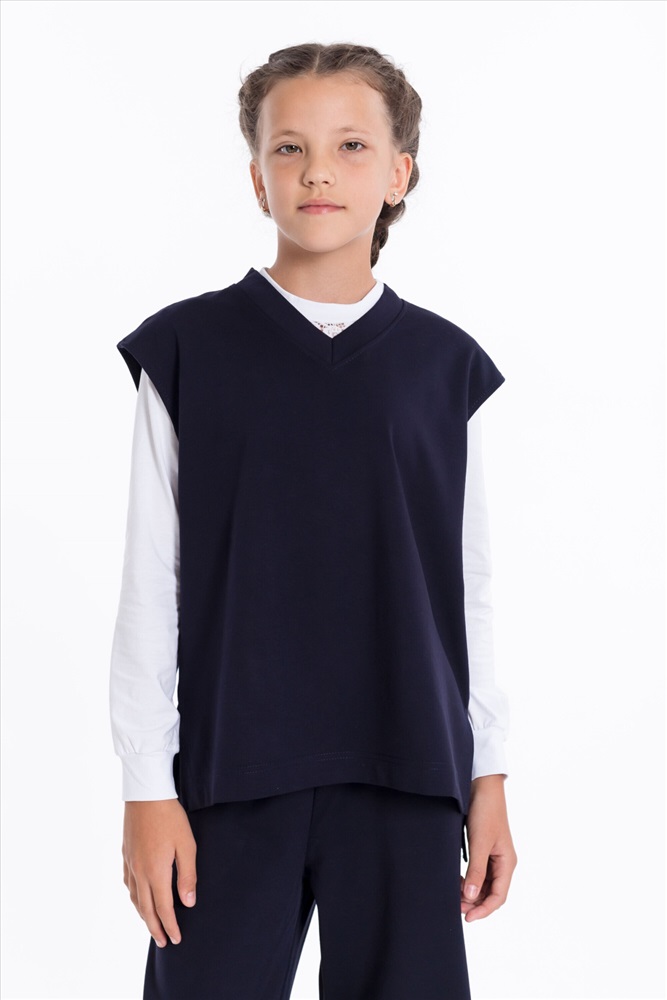 Жилет из однотонного полотна "академик". Свободного кроя, прямого силуэта, со спущенной проймой, V-образным вырезом