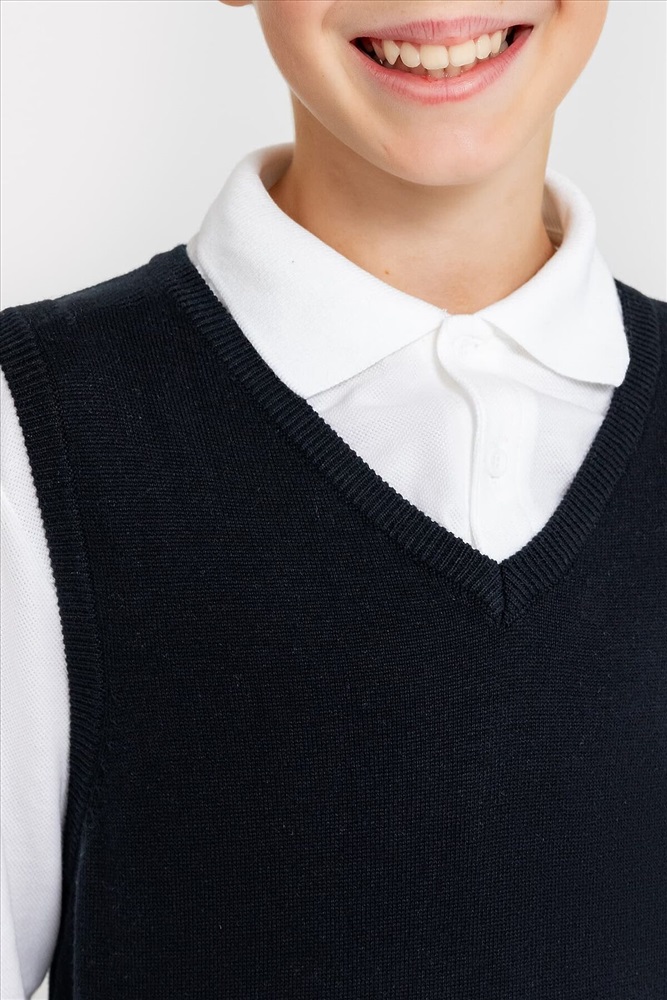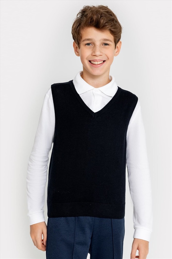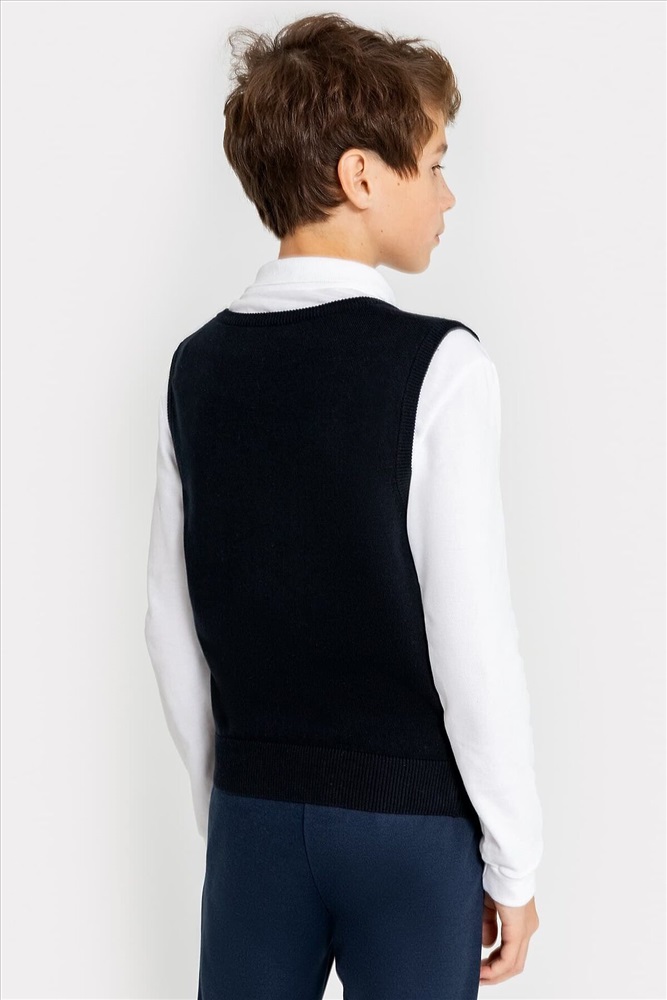 ID товара: 960192 Состав: 100% Хлопок Сезон: Демисезон Длина: Средняя Фасон: Прямой Рукав: без рукавов Вырез горловины: V-образный Основная ткань: Хлопок Стиль: классический Страна бренда: Беларусь Страна производства: Беларусь Вязаный жилет для мальчика. Комментарии к товару