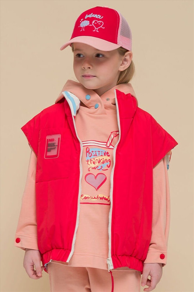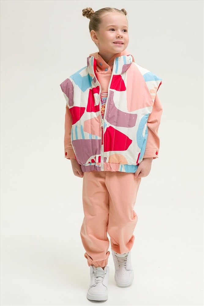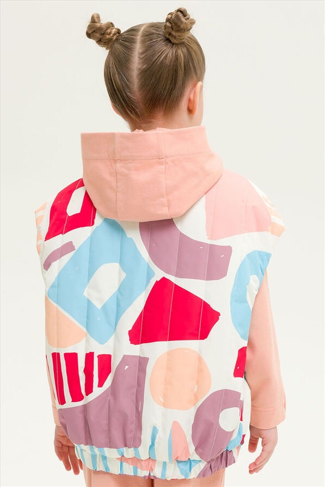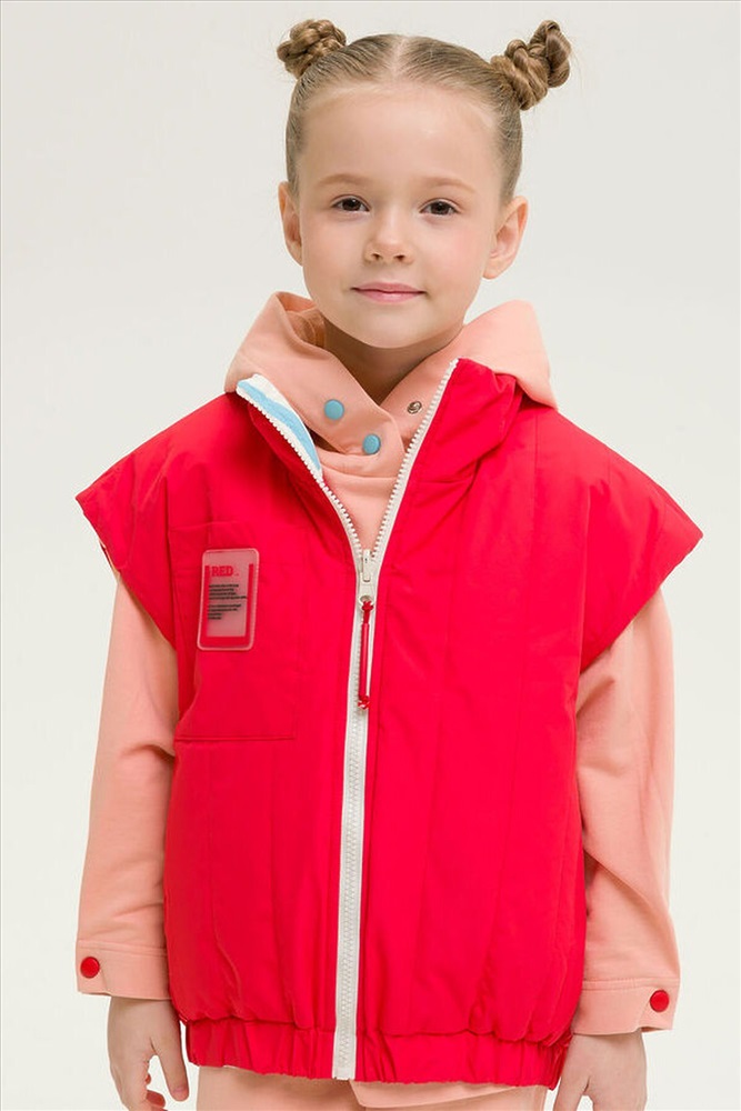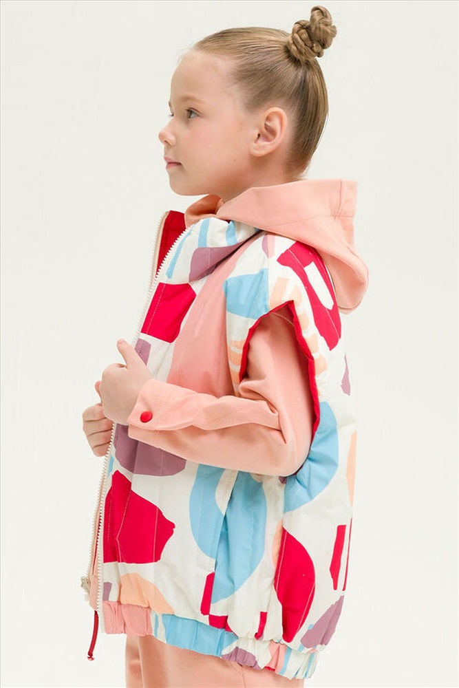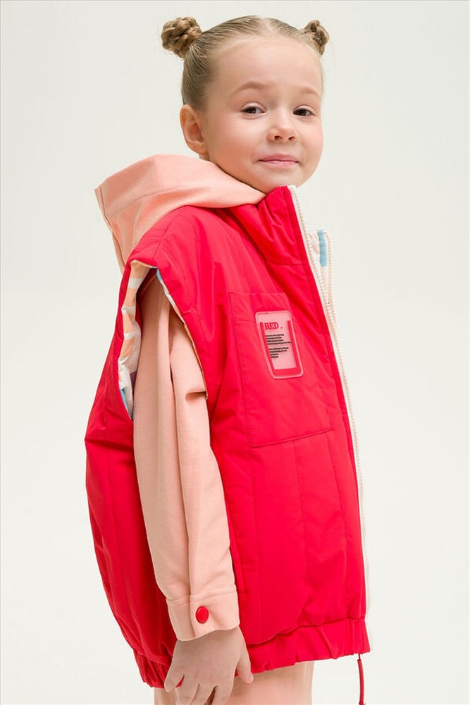 ID товара: 833851 Состав: 100% Полиэстер+мембрана, подклад- 100% Полиэстер+мембрана, утеплитель- 100% Полиэстер Сезон: Весна/Лето Фасон: Оверсайз Рукав: Без рукава Вид застежки: Молния Рисунок: Фантазийный Тип карманов: Прорезные Утеплитель: Полиэстер Основная ткань: Полиэстер Реком. темп. режим: до +5ºС Страна бренда: Россия Страна производства: Китай Новинка. Современный и стильный стеганый двухсторонний жилет для девочек. Ветрозащитная непромокаемая цветная детская жилетка для малыша ультрамодного дизайна с геометрическим принтом на одной стороне, на передних половинках жилета находятся рельефные швы и карманы. Однотонная со второй стороны, также спроектированы карманы в рельефных швах переда и дополнительно настрочен один нагрудный карман, декорированный вышивкой. Весенняя жилетка водонепроницаемая, защитит от ветра и дождя весной и летом, непогода больше не испортит прогулки. Удобная удлиненная жилетка с перепадом длины, спинка длиннее, воротник мягкая стойка, низ собирается на резинку. Жилетка демисезонная для девочки температурный режим +5, удобно надевать на худи, толстовки или тонкие ветровки, демисезон, теплая весна, холодное лето. Молодежная жилетка для подростка удивит своей функциональностью. Продуманный крой делает каждое движение свободным и комфортным. Легкая безрукавка подростковая, прямой свободный силуэт, супер оверсайз фасон делают линии верхней одежды мягкими и плавными. Стильная жилетка на замке для детей станет незаменимым вариантом для садика, для игр на улице и прогулок на свежем воздухе, поездок в лагерь, поход и путешествий. Эта куртка без рукавов весенняя имеет широкий размерный ряд 98 104 110 116 подойдет для детей и подростков. Комментарии к товару