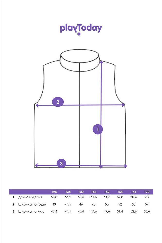 Производитель: PLAYTODAY ID товара: 1088811 Состав: Оболочка- 100% Полиэстер; Подкладка- таффета; Утеплитель- 150 гр Сезон: Демисезон Длина: Средняя Фасон: Прямой Рукав: без рукавов Вид застежки: Молния Тип карманов: Прорезные Утеплитель: с утеплителем, 150 гр Стиль: повседневный Реком. темп. режим: до +10ºС Страна бренда: Германия Страна производства: Китай