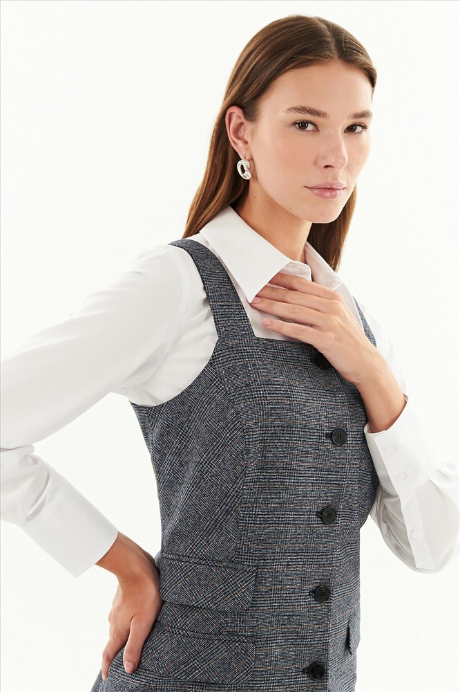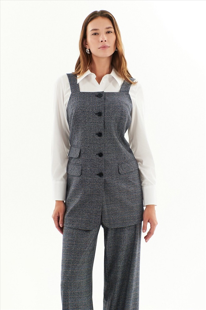 ID товара: 1090365 Состав: Основная ткань- Полиэстер 63%, Вискоза 34%, Эластан 3%; Подкладка- Полиэстер 100% Сезон: Демисезон Длина: Удлиненная Фасон: Прямой Рукав: без рукавов Вид застежки: Пуговицы Вырез горловины: Каре Основная ткань: Полиэстер Стиль: Деловой Страна бренда: Россия Страна производства: Россия Удлиненный жилет на широких бретелях полуприлегающего силуэта из костюмной ткани. С пуговицами и прорезными карманами с клапанами. Жилет на подкладке. Комментарии к товару