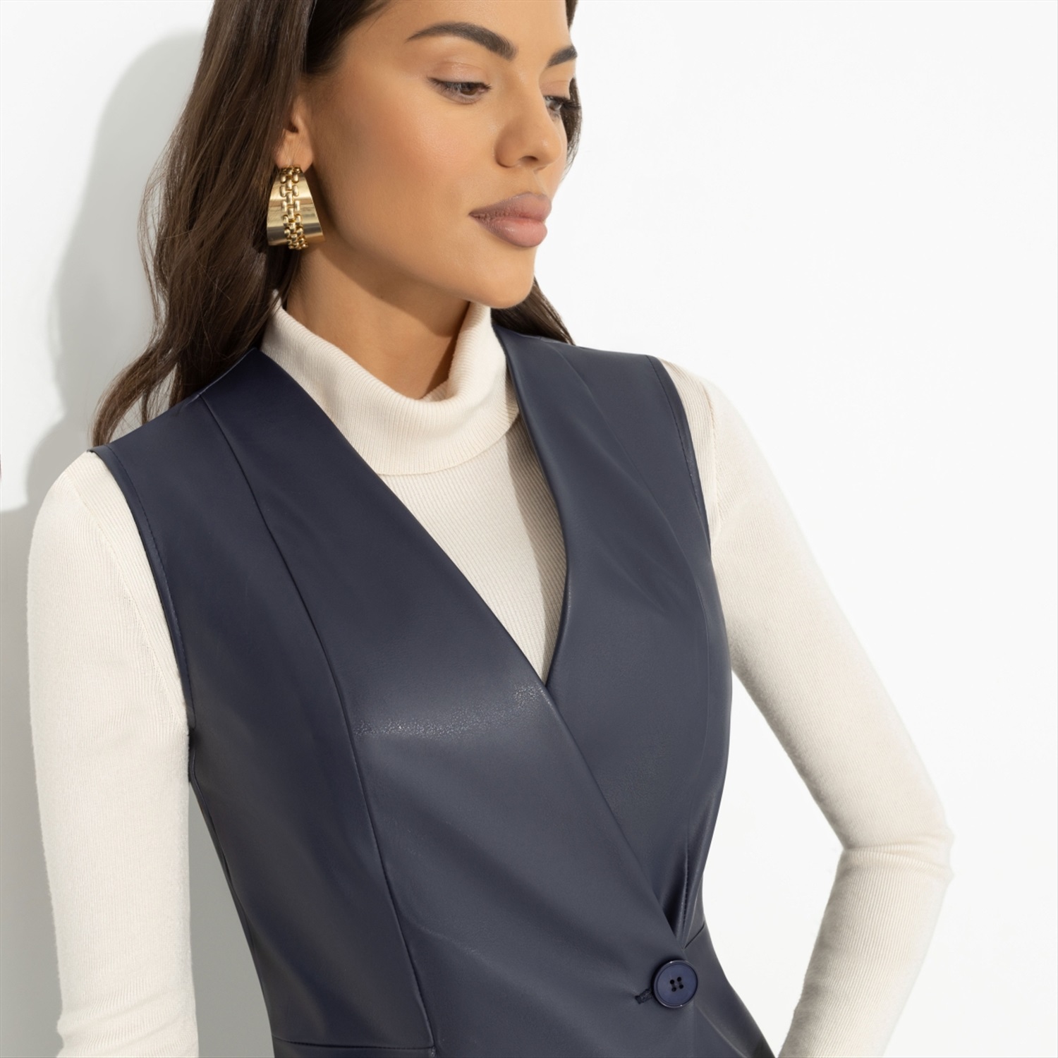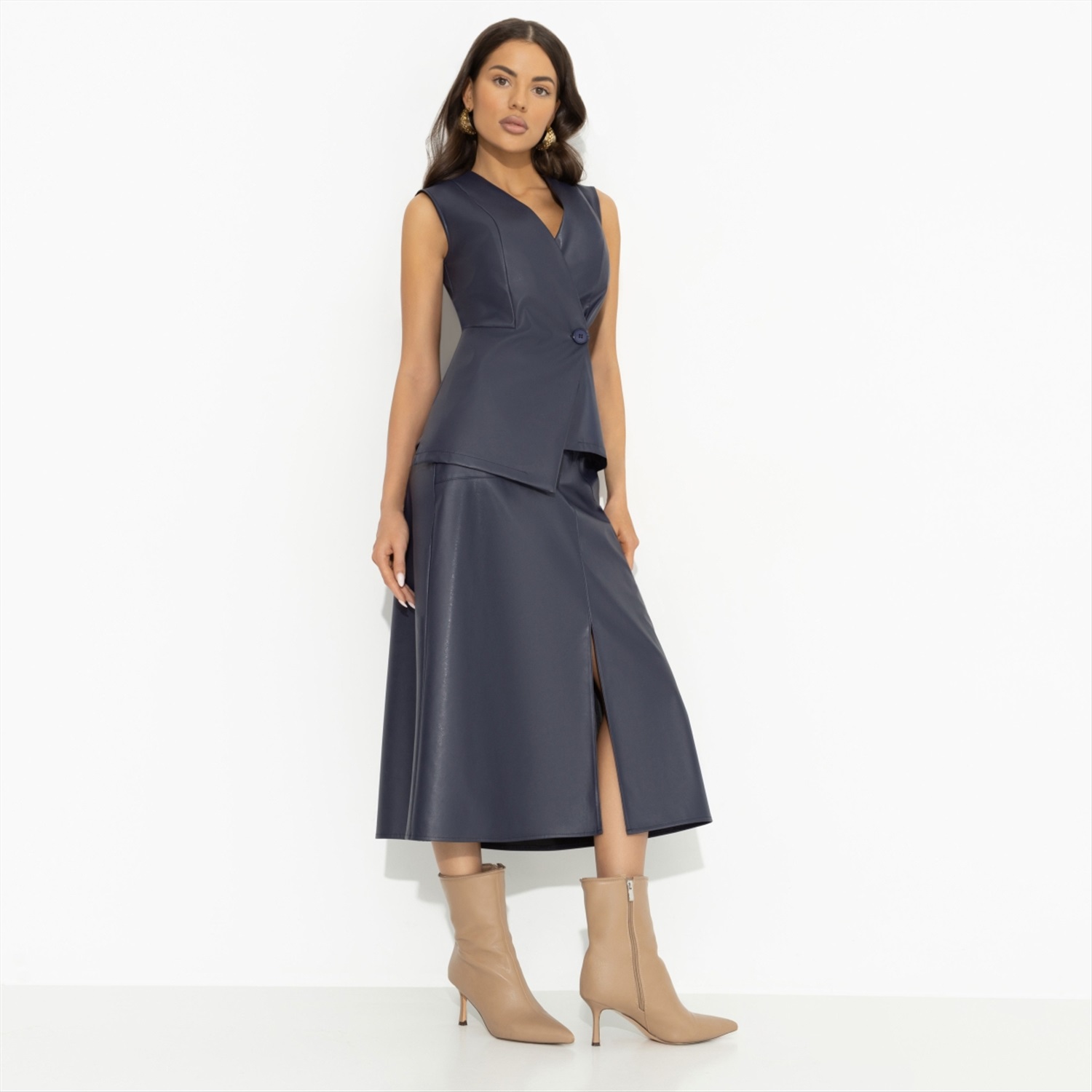 Girls, у нас тут легендарный жилет! Глубокий цвет летнего ночного неба, приталенный силуэт и мощный коэффициент притяжения. Огонь, пожар и всё такое. Жилет приталенного силуэта. Однобортный, без лацканов. Асимметричный крой подола изделия.