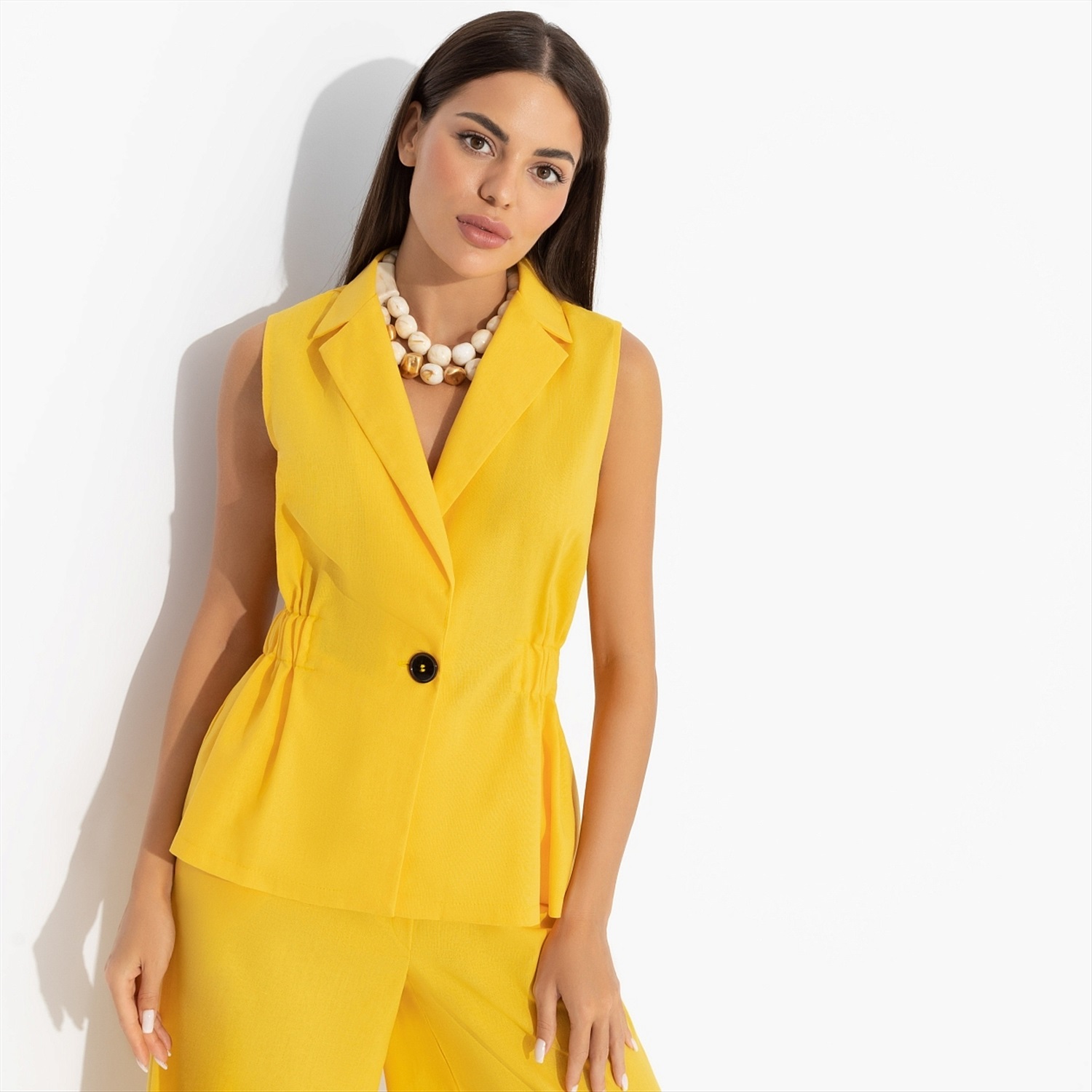 Влюбленную в моду женщину видно издалека. Её походка уверенная, взгляд сияющий, а движения грациозны. Она совершенно точно знает, что прекрасна. В жилете CHARUTTI о твоей здоровой самооценке узнают все. Жилет с лацканами приталенного силуэта. Линия талии оформлена скрытой резинкой. Жилет застегивается на пуговицу.
