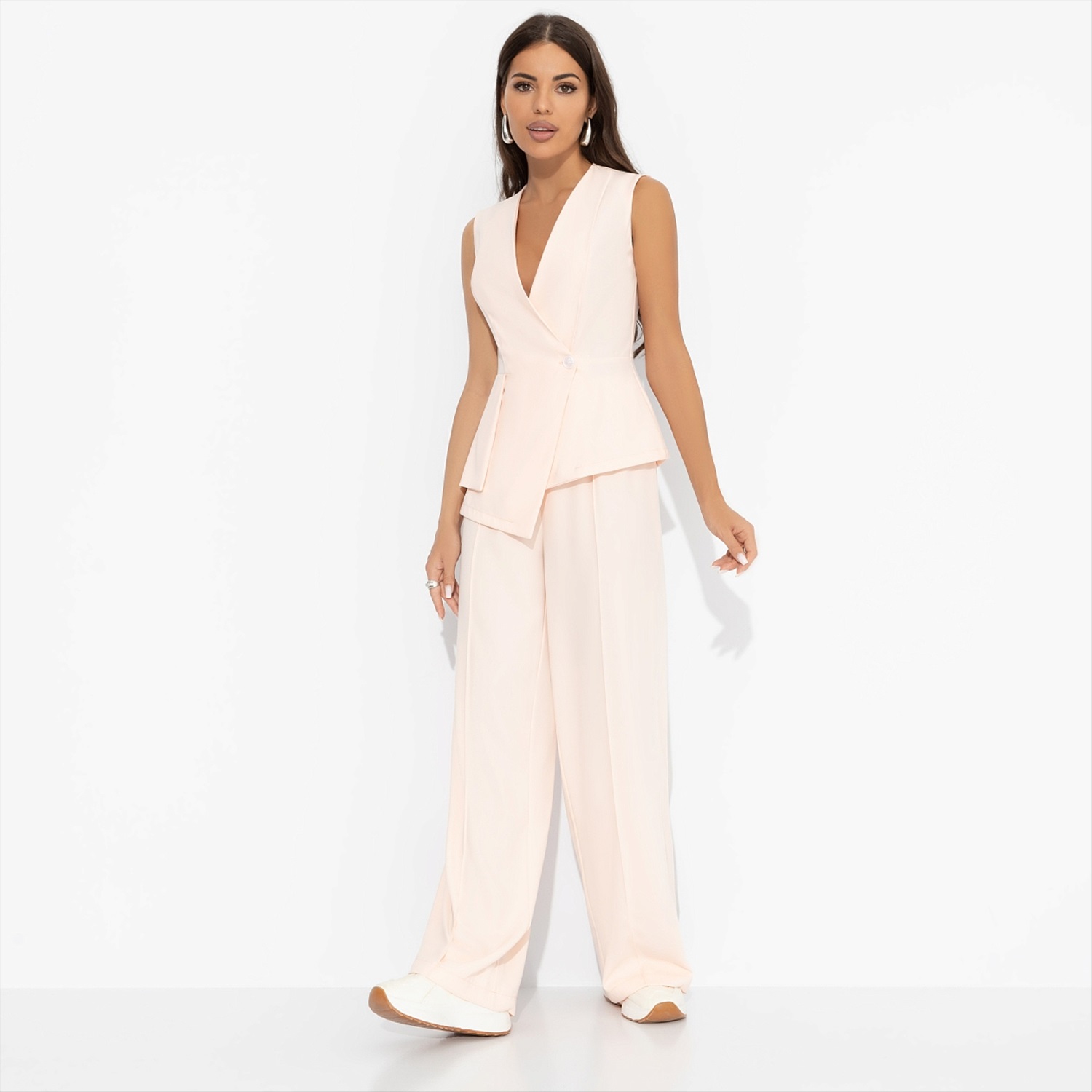 Бестселлер ЧАРУТТИ в новом оттенке – едва уловимый, нежный розово-персиковый цвет. С ним жилет приобрел утонченность и изящность. Подходит для свиданий, культурных походов в филармонию и других элегантных событий вашей жизни. Жилет приталенного силуэта. Асимметричный крой. Жилет без лацканов. Застегивается на пуговицу