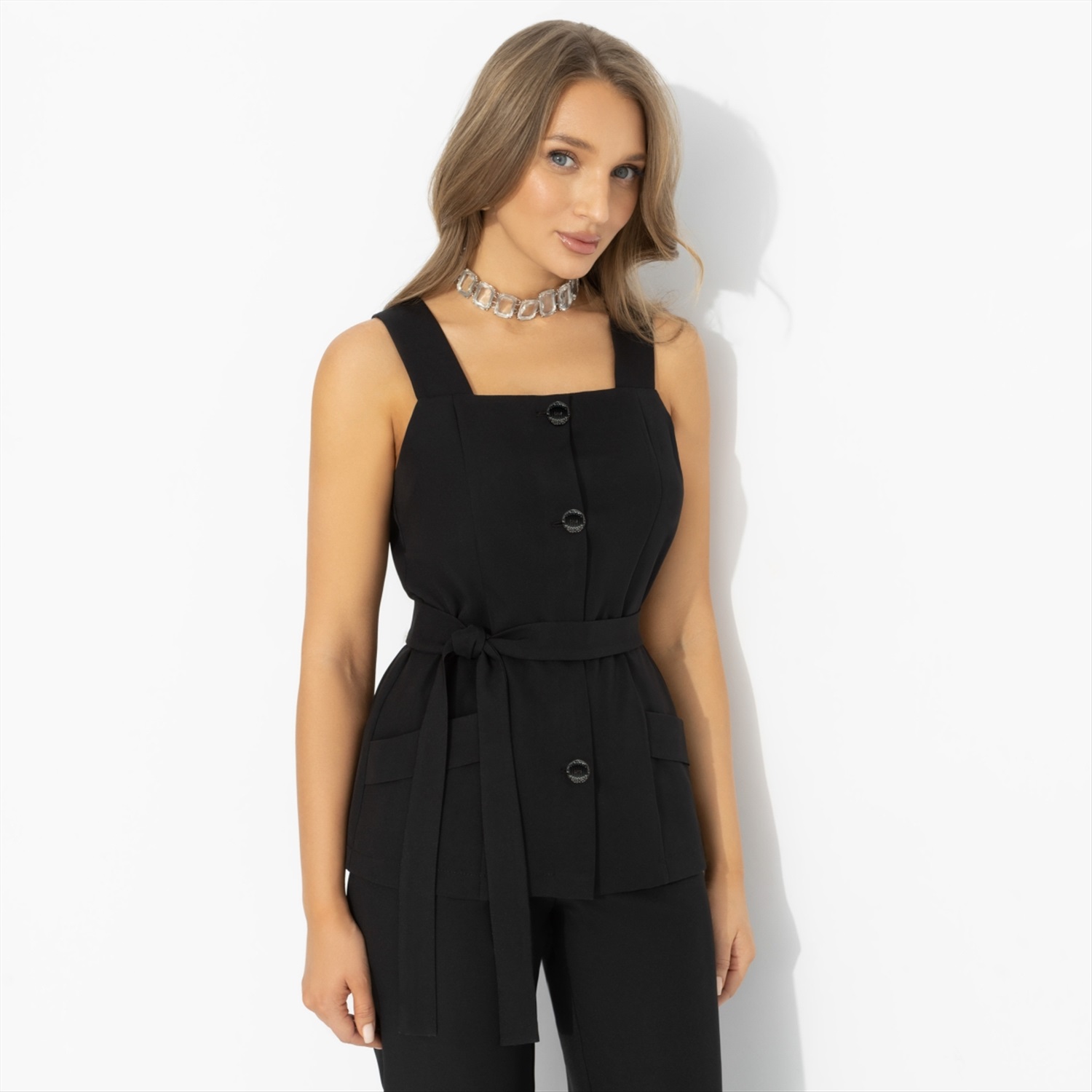 Иногда лучший план – нажать на паузу. Остановить поток мыслей, выдохнуть и опереться на то, что никогда не подводит. Жилет от ЧАРУТТИ – именно такая база: спокойная, выверенная, элегантная. Надела, – и разум свободен для важных задач и решений. Жилет прямого силуэта с акцентом на талию, пояс в комплекте. Квадратный вырез, пуговицы, есть карманы. Ткань эластичная, держит форму. Модель идеальна для многослойных образов. Комментарии к товару
