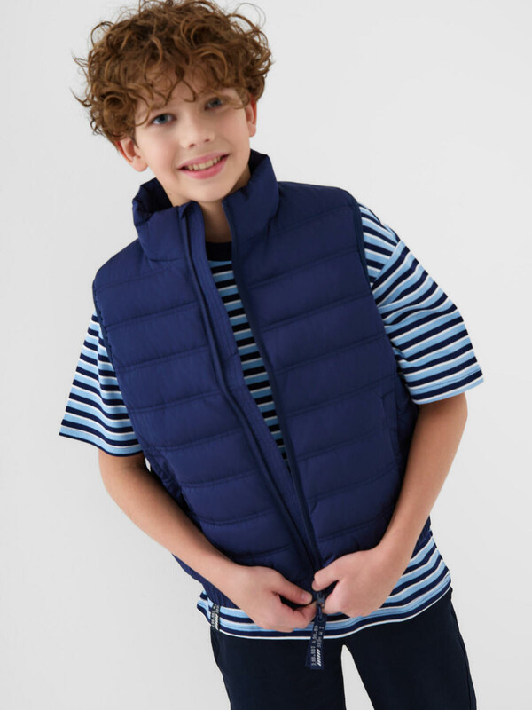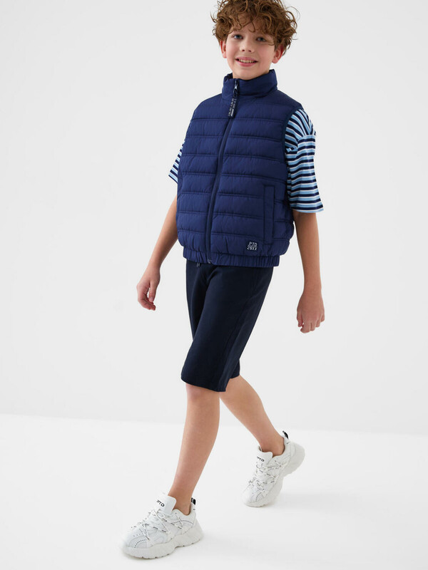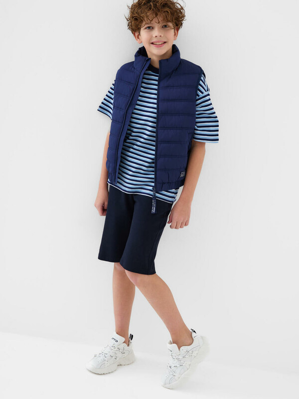 Утеплённый стеганый жилет для мальчика подростка. Температурный режим от +15°C до 0°C. Ткань с ветрозащитной и водоотталкивающей пропиткой. Два боковых кармана на магнитах. Внутри предусмотрен карман на липучке. Воротник стойкой защищает шею от ветра. Практичный и универсальный жилет для прохладной погоды. Светоотражающие элементы.