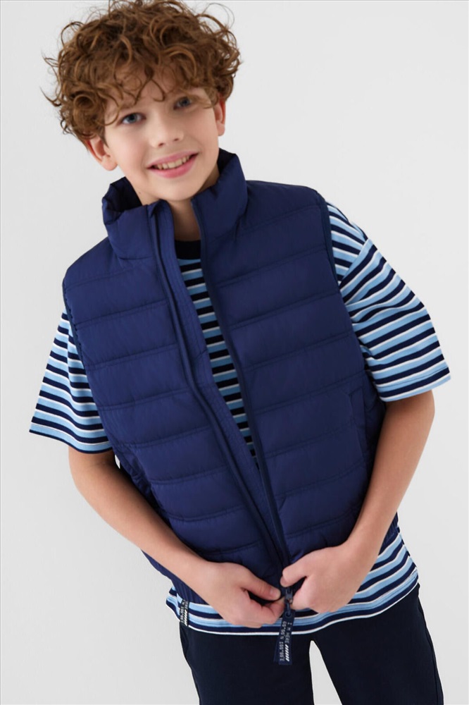 ID товара: 1240198 Состав: Верх- 100% полиэстерПодкладка- таффетаНаполнитель- 150 гр Сезон: Весна/Лето Утеплённый стеганый жилет для мальчика подростка. Температурный режим от +15°C до 0°C. Ткань с ветрозащитной и водоотталкивающей пропиткой. Два боковых кармана на магнитах. Внутри предусмотрен карман на липучке. Воротник стойкой защищает шею от ветра. Практичный и универсальный жилет для прохладной погоды. Светоотражающие элементы. Комментарии к товару