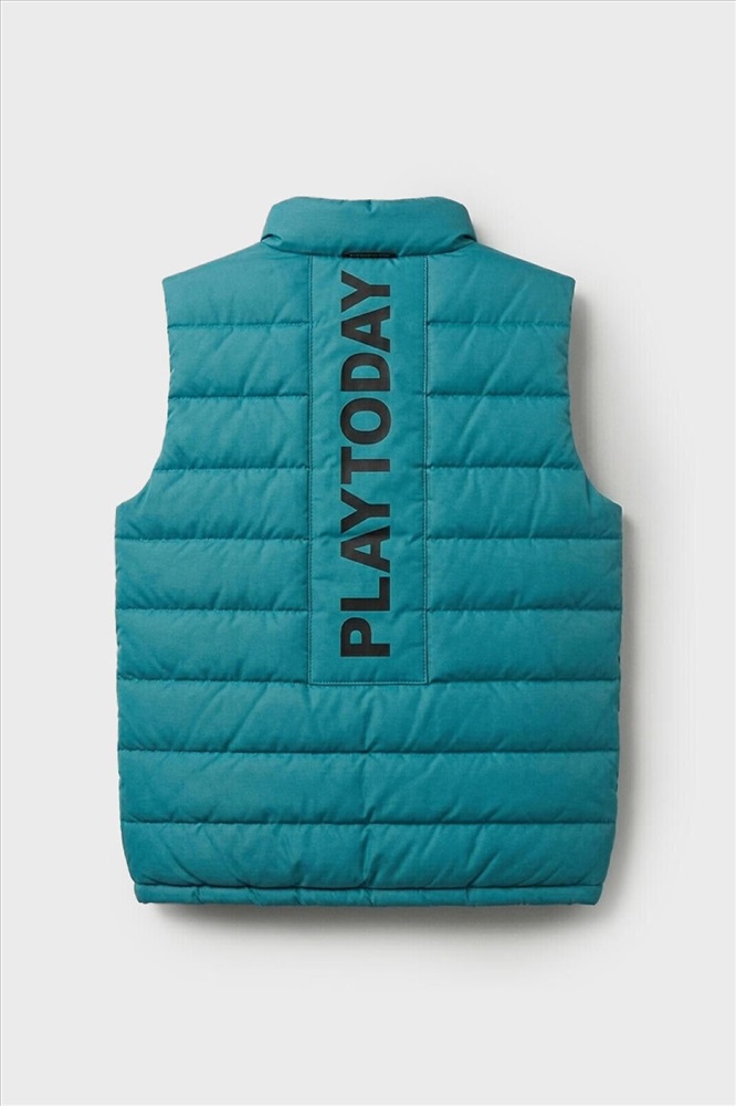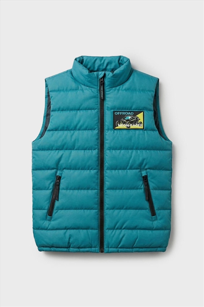 Лёгкий детский стёганый жилет для мальчика. Температурный режим от +15°C до 0°C. Ветрозащитное и водоотталкивающие покрытие. Гладкая подкладка. По бокам предусмотрены два кармана на молнии. Внутри расположен карман на липучке. Проймы и нижний край обработаны эластичной резинкой для комфортной посадки.