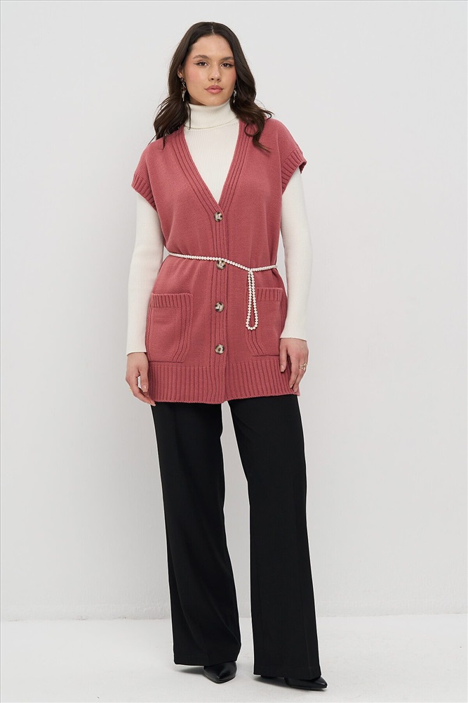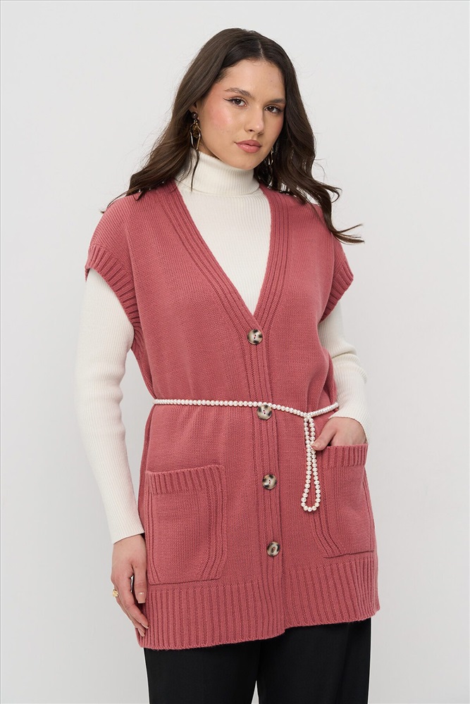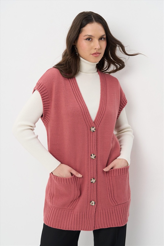 Удлинённый вязаный жилет на пуговицах.