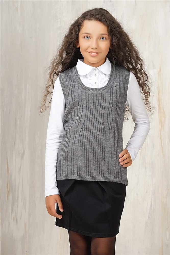 Трикотажный жилет для девочки, в рубчик. Прилегающий силуэт, без рукавов, круглая горловина.