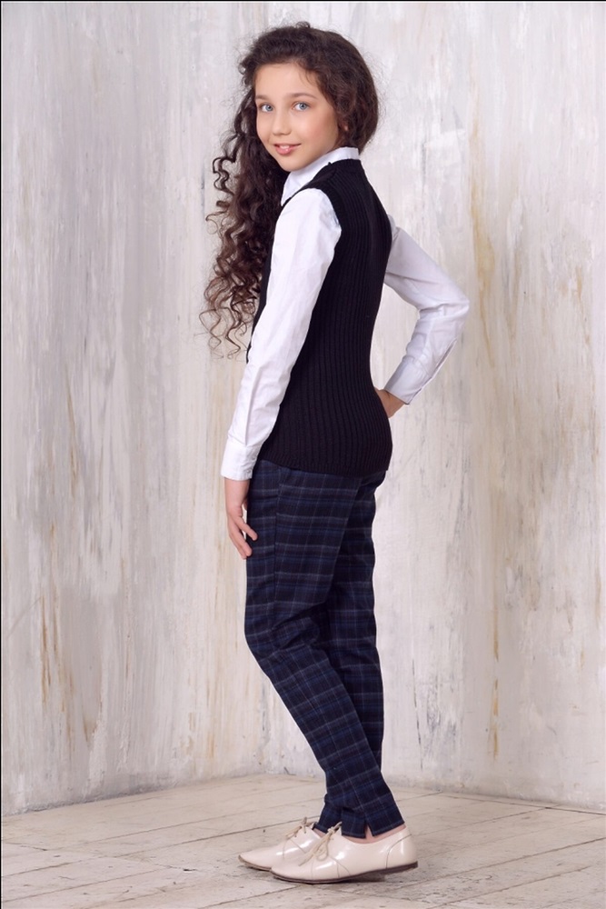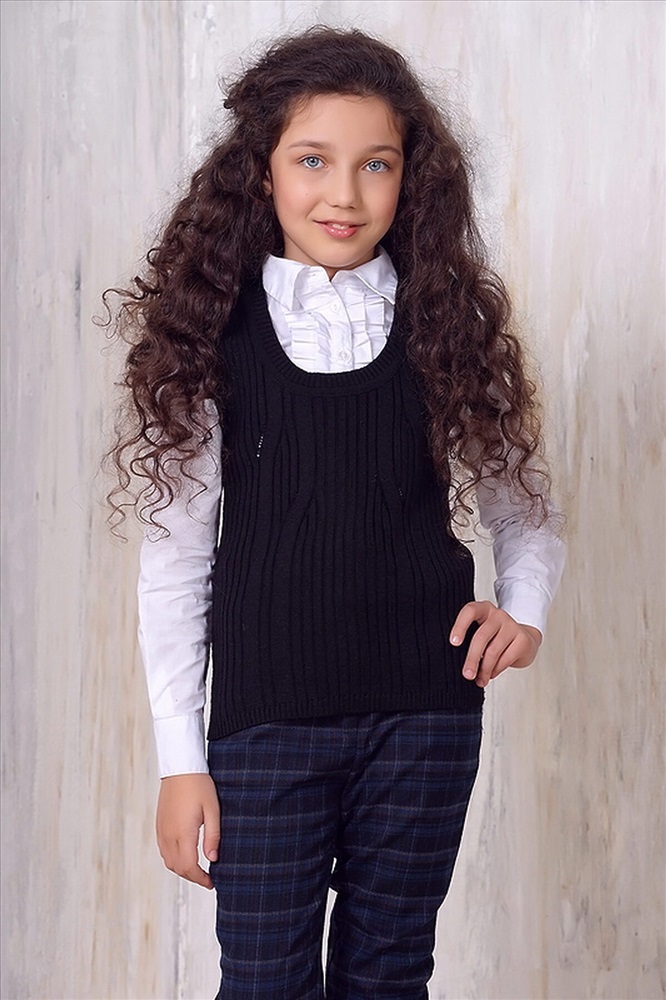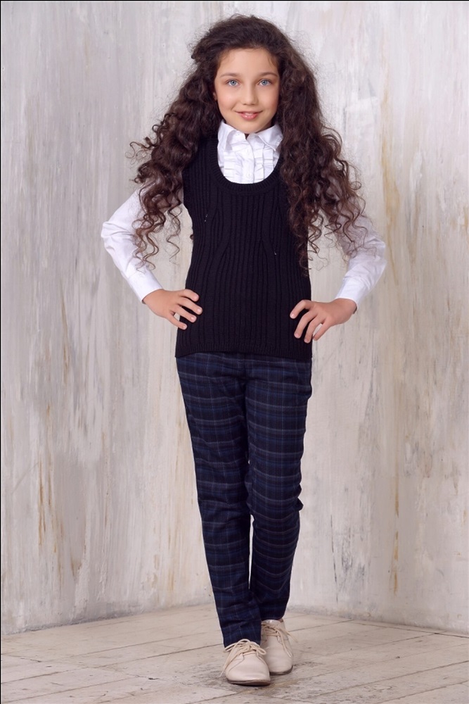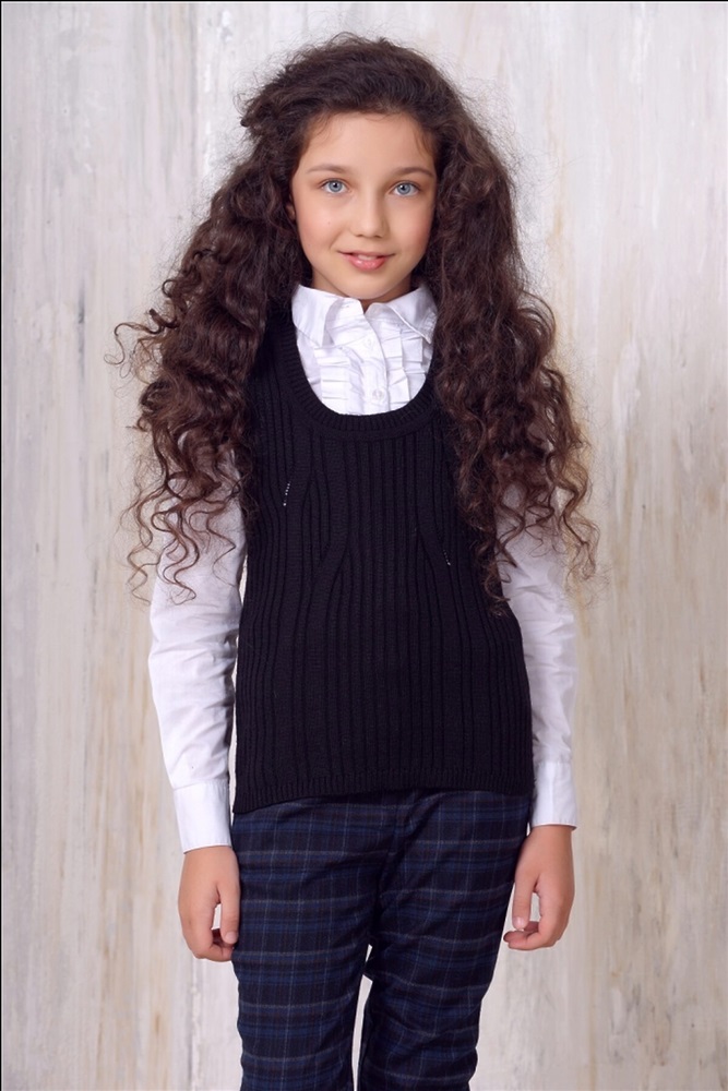 Трикотажный жилет для девочки, в рубчик. Прилегающий силуэт, без рукавов, круглая горловина.