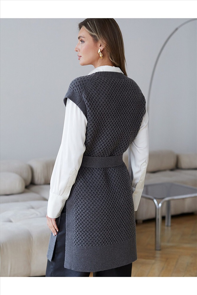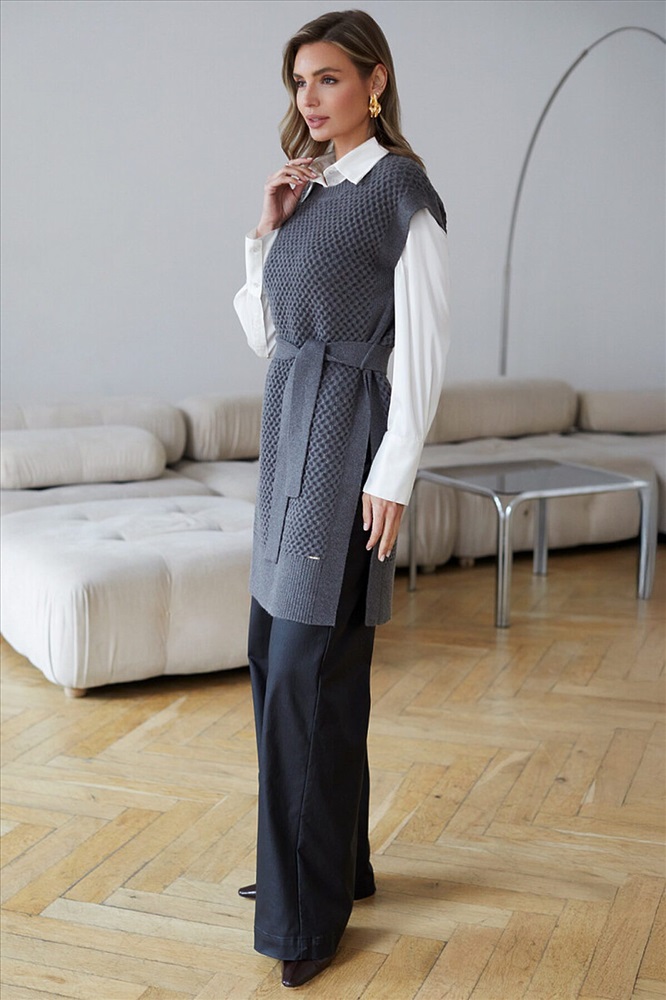 ID товара: 1193850 Состав: 52% ПАН (акрил) 33% Полиэстер 8% Полиуретан 7% Кашемир Сезон: Осень/Зима Длина: Удлиненная Фасон: Прямой Рукав: Без рукавов Вырез горловины: Округлый Декоративные элементы: Пояс Основная ткань: ПАН Стиль: Повседневный Страна бренда: Россия Страна производства: Китай Удлиненный жилет выполнен из мягкой пряжи с кашемиром. Модель фактурной вязки дополнена высокими боковыми разрезами и поясом в тон изделия. Хорошо сочетается водолазками, лонгсливами и блузками. Мягкая пряжа очень приятная к телу, поддержит комфорт на протяжении всего дня, при этом не перегревая. Сочетается в костюме с брюками D38.013, D38.012 и юбкой D36.016 Комментарии к товару