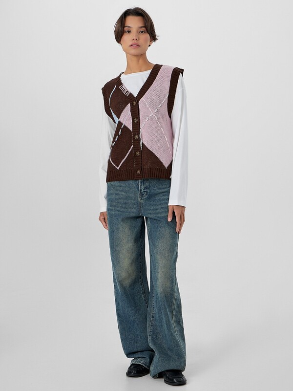 Жилет легко комбинируется с платьями, брюками и джинсами, дополняя как повседневные, так и нарядные образы. С ним вы сможете подчеркнуть стиль и чувствовать себя комфортно в любой обстановке — от офиса до вечерней прогулки.