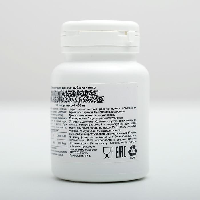 Состав: масло кедровое, живица кедровая, витамин Е.