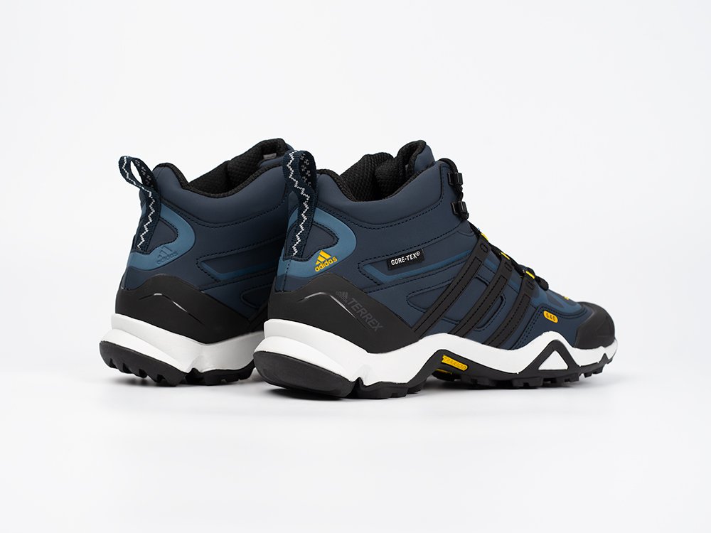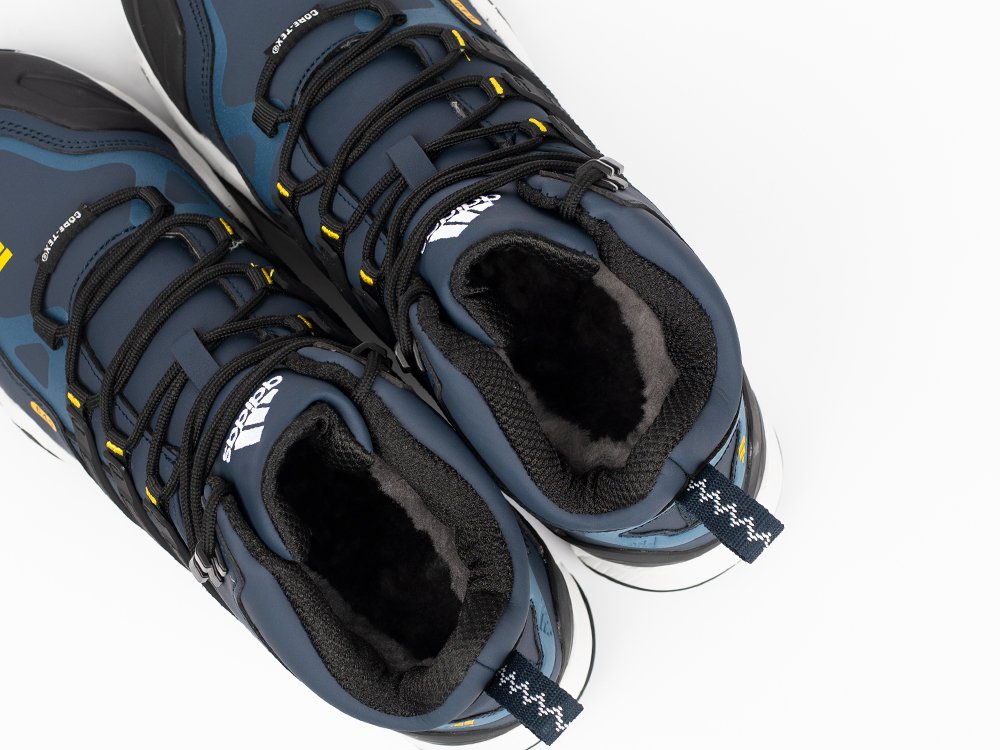 Цвет: Синий Сезон: Зима Материал верха: Кожа Категория: Ботинки Пол: Мужской Adidas Terrex Winter — зимние ботинки для прогулок на природе и в городском массиве. Обувь Верх Adidas Terrex сделан из микса удобных материалов: нубука, текстиля и влагоотталкивающего