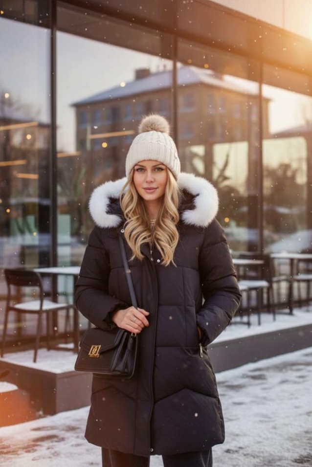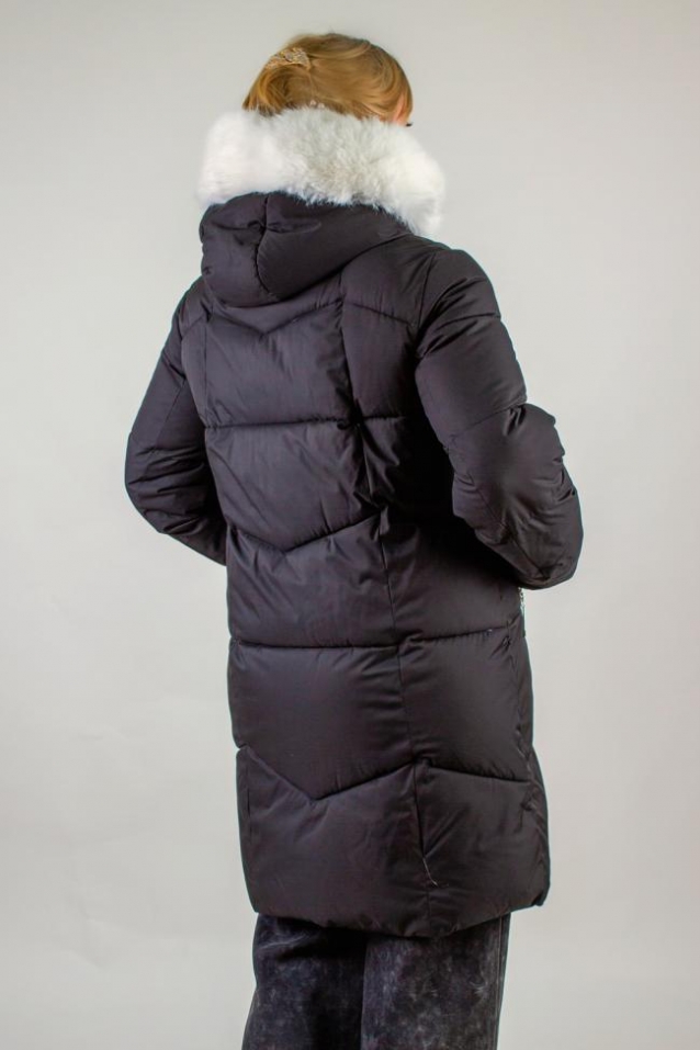Зимняя удлинённая куртка-пальто арт. 28119-1 идеальный выбор для тех, кто ценит комфорт, функциональность и элегантный внешний вид в холодное время года. Модель удлинена до колен, что обеспечивает дополнительную защиту от ветра и холода, а современный дизайн отлично впишется в любой городской образ. Капюшон с высоким воротником-стойкой на фиксаторах надежно удерживает тепло и защищает от непогоды. По контуру капюшона отстегивающаяся аккуратная опушка из качественного искусственного меха белого цвета стильный и практичный элемент, который можно при желании отстегнуть. Куртка застегивается на двухзамковую молнию, дополненную планкой с кнопками, что гарантирует защиту от продувания и сохраняет тепло внутри. Утеплитель равномерно распределен по всей поверхности изделия благодаря современной стёжке-строчке: такой способ прошивки обеспечивает максимальную теплоизоляцию без комков и неутеплённых участков. Водоотталкивающая матовая ткань в чёрном оттенке защитит вас от снега и легкого дождя, сохраняя привлекательный внешний вид и не промокая. Функциональность модели подчеркнута двумя врезными боковыми карманами на молниях они удобны для хранения мелочей и рук в холодные дни. Трикотажные рукава с манжетами плотно облегают запястье, не пропуская ветер и не создавая дискомфорта при активном движении. Внутренний карман позволит хранить ценные вещи в безопасности и под рукой. Качественный пошив, продуманная конструкция и надежная фурнитура делают эту куртку долговечной и практичной. Удобная посадка по фигуре не стесняет движений, а аккуратная стёжка добавляет изящества и визуально стройнит силуэт. Зимняя куртка-пальто арт. 28119-1 станет вашим надёжным спутником в холодные месяцы, сочетая в себе высокие эксплуатационные характеристики и утончённый стиль.