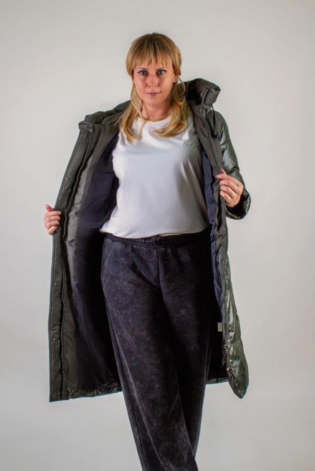 Зимняя удлиненная куртка с капюшоном арт. 221 c высоким теплым воротником стойкой переходящей в капюшон идеальное решение для холодного сезона, сочетающее в себе стиль, комфорт и защиту от непогоды. Эта куртка создана, чтобы обеспечить надежное утепление и удобство в любых условиях, будь то городские прогулки или активный отдых на природе. Куртка выполнена из глянцевой ткани, благодаря чему вы надежно защищены от ветра, снега и дождя. Особое преимущество материала грязь, шерсть и волосы к нему не прилипают, что значительно облегчает уход за изделием и сохраняет его привлекательный внешний вид даже после длительного ношения. Забудьте о постоянной чистке ваша куртка будет выглядеть безупречно даже после прогулок по городу или похода в лес. Конструкция куртки предусматривает удобную двухстороннюю молнию с защитной планкой, что позволяет быстро регулировать вентиляцию и удобно застегиваться. Удлиненный фасон надежно прикрывает бедра, создавая дополнительный слой тепла, а горизонтальная стежка по всей поверхности куртки обеспечивает равномерное распределение наполнителя без излишнего объема утепление здесь продумано до мелочей, комфортно и не перегружает силуэт. Капюшон на завязках, который можно легко подстроить под индивидуальные предпочтения и защититься от ветра. Капюшон и кокетка выполнены из матовой текстурной ткани, контрастирующей с основной глянцевой поверхностью куртки, что создает визуальный акцент и добавляет стиля. Практичность модели поддерживается благодаря двум вместительным боковым карманам, закрывающимся на кнопки в них удобно хранить мелочи, которые всегда должны быть под рукой. Внутренний карман в подкладке позволяет хранить ценные вещи в безопасности и тепле, что особенно важно в холодную погоду. Эта зимняя куртка отличный выбор для тех, кто ценит качество, комфорт и продуманный дизайн. Она отлично впишется в любой гардероб, сочетая актуальный современный стиль с функциональностью и долговечностью. Независимо от погодных условий, вы будете чувствовать себя тепло, уютно и стильно.