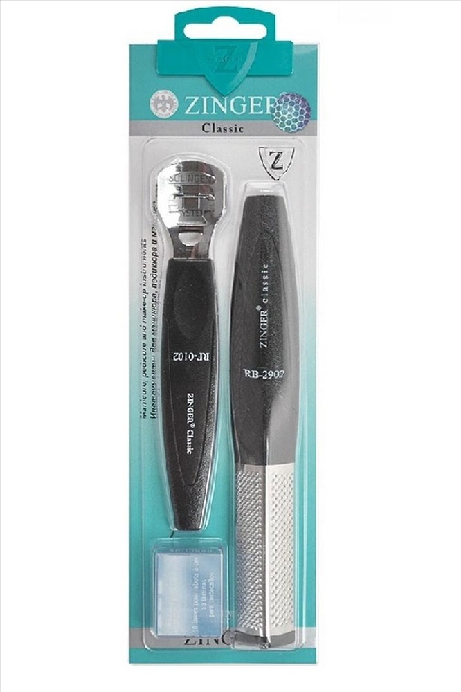 ID товара: 1111335 Сезон: Демисезон Вес нетто: 0.074 Д-Ш-В: 24.4/10/1.6 Производитель: Zinger Срок годности (мес): Не ограничен Количество в упаковке: 3 предмета Страна бренда: Россия Страна производства: Китай Zinger — это многолетний опыт и европейское качество в производстве специального инструмента для маникюра и педикюра. При изготовлении используются только высококачественные материалы с большой износоустойчивостью. Изделия современного дизайна для профессионального и домашнего использования. Смягчает и полирует кожу рук, локтей и пяток. Легко удаляет мозоли и затвердевшую кожу. Педикюрный набор Zinger Classic zo-Sis-61 включает в себя 3 предмета: терка металлическая; терка с бритвой; лезвия. Комментарии к товару