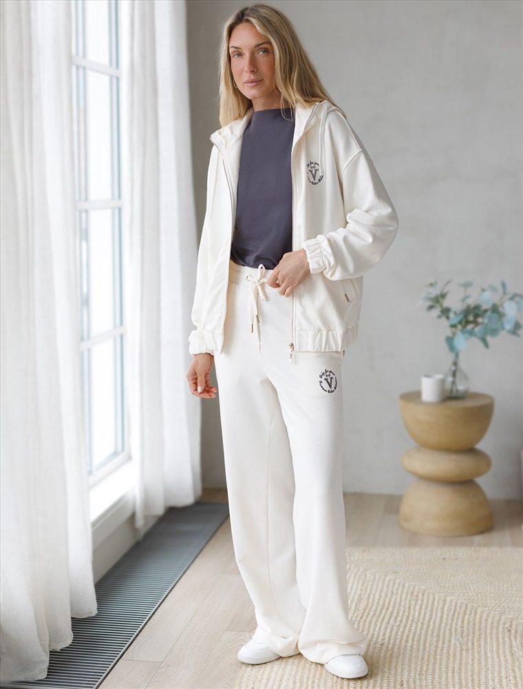 Уютное и стильное зип худи белого цвета на молнии и с капюшоном — идеальный выбор для создания модного повседневного образа в прохладную погоду. Выполнено из эластичного футера трехнитки, натуральный материал дарит комфортное ощущение на протяжении всего дня и отличную воздухопроницаемость. Модель дополнена вышитым логотипом бренда и боковыми карманами. Капюшон со шнуром, резинка по низу и манжеты на рукавах придают джемперу комфорт. Практичная молния делает худи удобным для быстрого переодевания и добавляет нотку спорт шика вашему стилю.