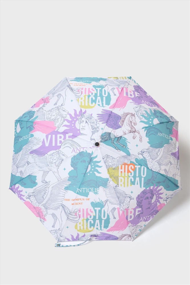 Яркий зонт-автомат для девочки-подростка. Купол запринтован фирменным принтом. Комбинируется с резиновыми сапогами и дождевиком из коллекции. Брендированная ручка. Длина 28 см, диаметр купола 97 см. Механизм складывания - автомат