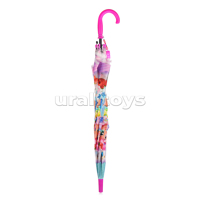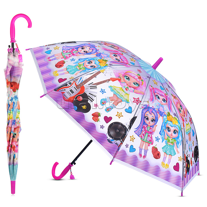 • Конструкция: трость. • Тип раскладывания: автоматический. • Тип складывания: механический. • Длина в сложенном виде: 67 см. • Форма купола: восьмигранник. • Диаметр купола: 78 см. • Материал купола: полиэстер. • Количество спиц: 8. • Удобная закругленная ручка. • К ручке прикреплен свисток. • В сложенном виде застегивается на кнопку. • Материалы: полиэстер, металл, пластик. • Соответствует требованиям безопасности продукции. • Для детей от 3-х лет.