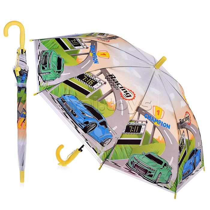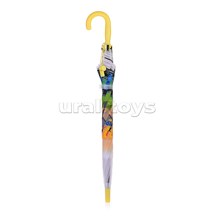 Код: 391608 Страна производитель: Китай Размеры упаковки: 66 x 10 x 4 см Количество в коробке: 60 Размер: 65 см Яркий детский зонт трость - это необходимый аксессуар для каждого ребенка Механизм полуавтомат, открывается с кнопки в одно движение, закрывается вручную Со свистком Материал: металл, пластика Для детей от 3-х лет Комментарии к товару