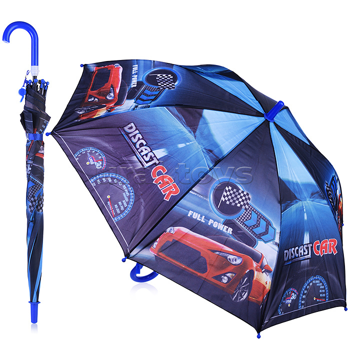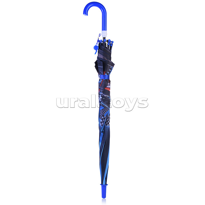 Конструкция: трость. Тип раскладывания: автоматический. Тип складывания: механический. Длина в сложенном виде: 67 см. Форма купола: восьмигранник. Диаметр купола: 78 см. Материал купола: полиэстер. Количество спиц: 8. Удобная закругленная ручка. На ручке висит свисток. В сложенном виде застегивается на липучку. Материалы: полиэстер, металл, пластик. Соответствует требованиям безопасности продукции. Для детей от 3-х лет.