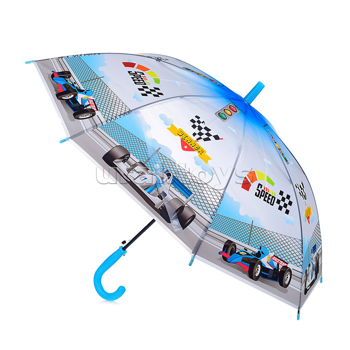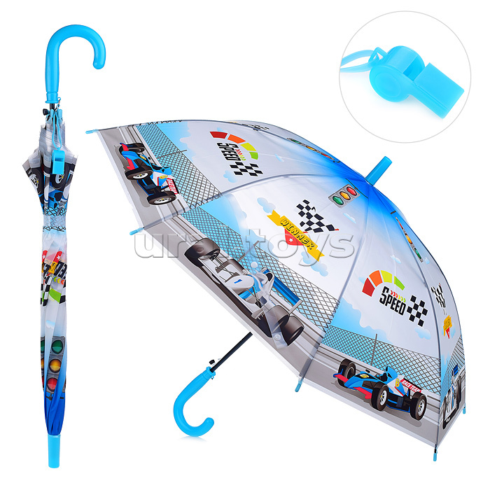 Конструкция: трость. Тип раскладывания: автоматический. Тип складывания: механический. Длина в сложенном виде: 67 см. Форма купола: восьмигранник. Диаметр купола: 78 см. Материал купола: полиэстер. Количество спиц: 8. Удобная закругленная ручка. На ручке висит свисток. В сложенном виде застегивается на липучку. Материалы: полиэстер, металл, пластик. Соответствует требованиям безопасности продукции. Для детей от 3-х лет.