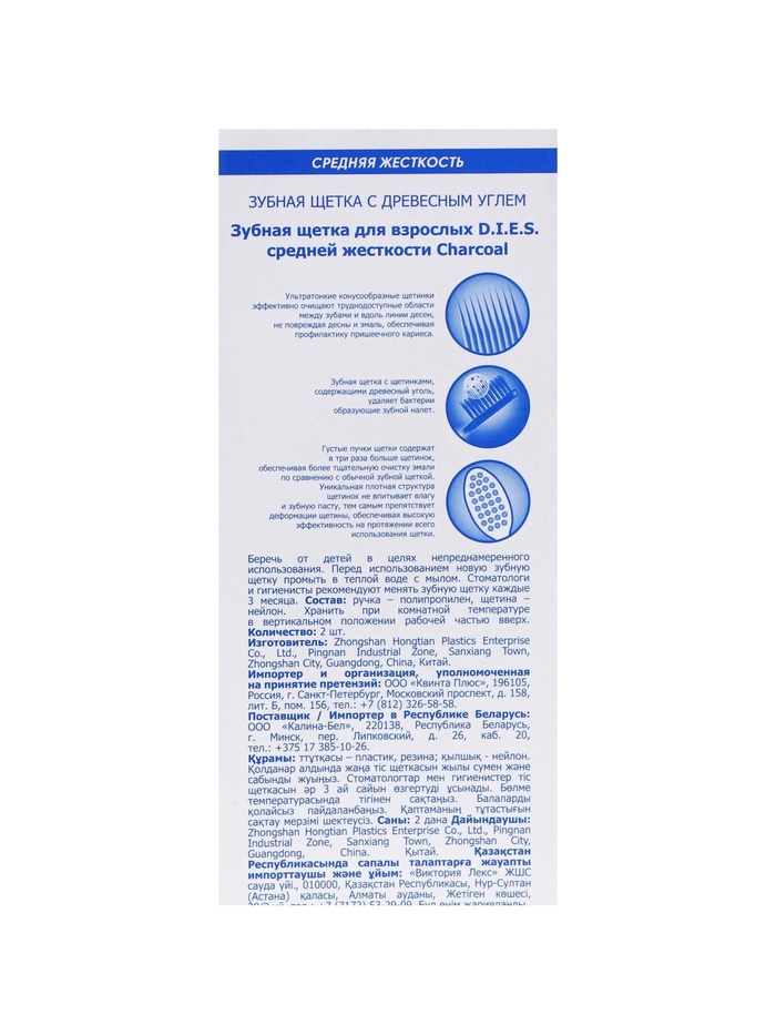 Зубная щётка D. I. E. S Charcoal, средней жёсткости, 1+1 шт микс