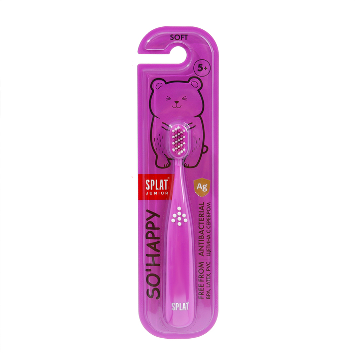 Зубная щетка SPLAT Junior с мягкой антибактериальной щетиной бережно очищает зубы и массирует десны. Ионы серебра в составе всех 3400 щетинок препятствуют размножению бактерий на ней. Особая форма позволяет лежать щетке на боку, не касаясь щетиной поверхности. Максимально продуманно и гигиенично! На выбор представлены щетки Junior 5 ярких цветов. Предназначено для детей от 5 лет.
