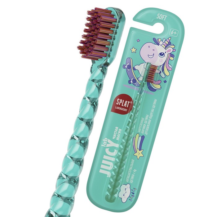 -Инновационное сапфировое округление кончиков щетины способствует бережному очищению зубов и придесневых зон. ВАЖНО! Перед использованием новую зубную щетку промыть в теплой воде (не более 60 °С) с мылом. Для наилучшего эффекта используйте щетку с зубными пастами SPLAT Juicy Lab. Детям до 6 лет чистить зубы в присутствии взрослых количеством пасты размером с горошину. Во время использования хранить щетку в вертикальном положении рабочей частью вверх. После вскрытия использовать в течение 2-3 месяцев. Материалы щетки – PP, PBT. Состав: полипропилен, полибутилентерефталат, ионы серебра. Комментарии к товару