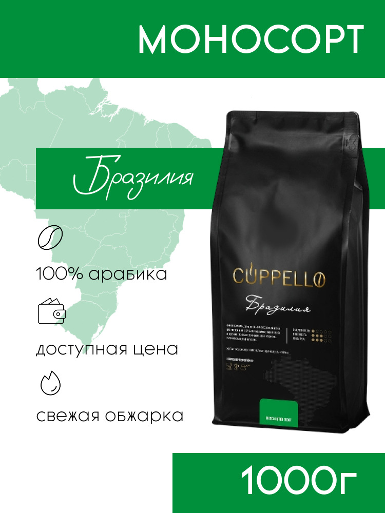 Кофе Cuppello Бразилия в зёрнах свежеобжаренный, уп. 1 кг