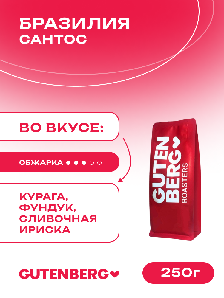 1185-250M Кофе молотый Бразилия Сантос, уп. 250 г