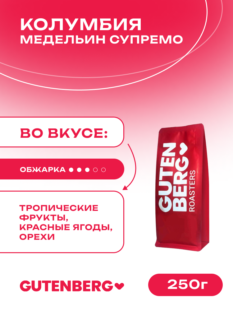1120-250 Кофе в зёрнах Колумбия Медельин Супремо, уп. 250 г