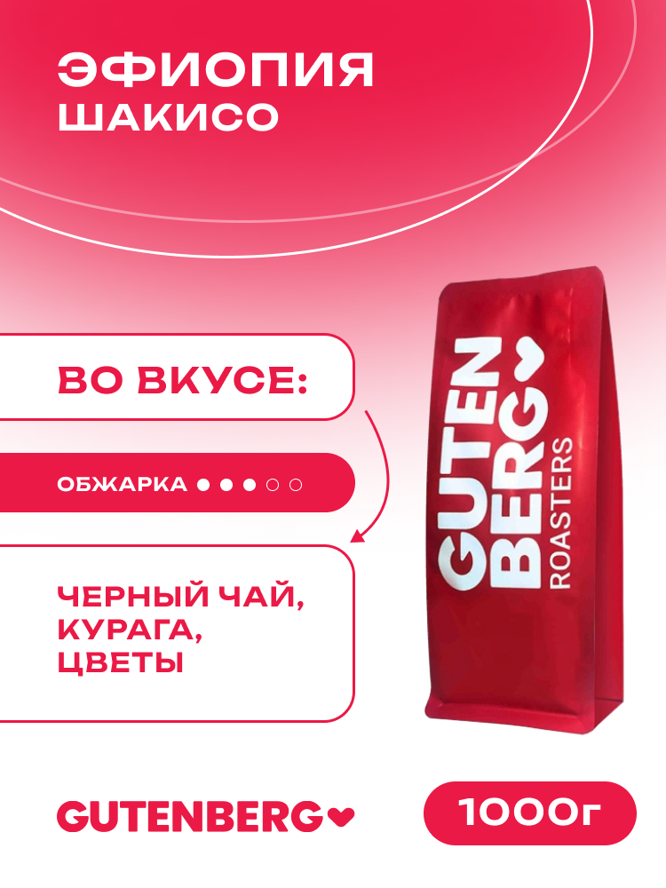 Кофе в зёрнах Эфиопия Шакисо, уп. 1 кг