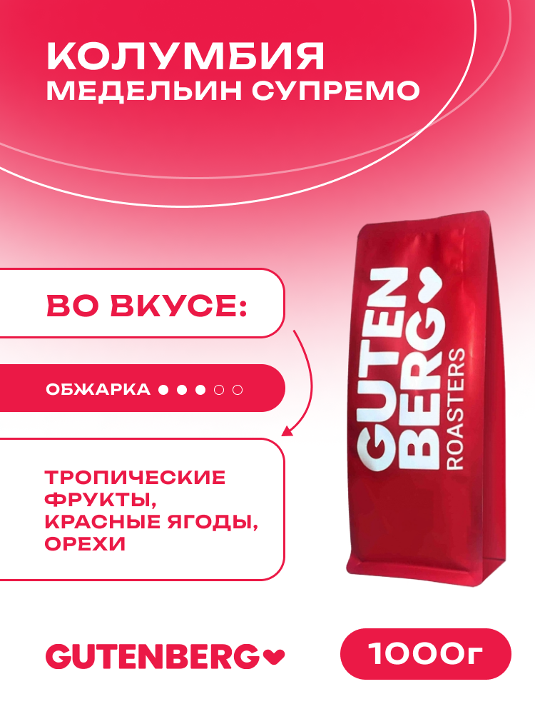Кофе в зёрнах Колумбия Медельин Супремо, уп. 1 кг