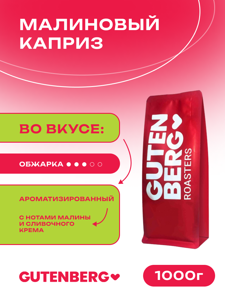 Кофе в зёрнах ароматизированный "Малиновый каприз", уп. 1 кг