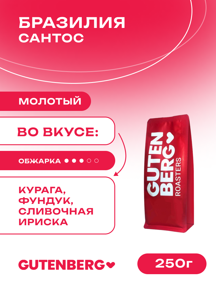1185-250M Кофе молотый Бразилия Сантос, уп. 250 г 520