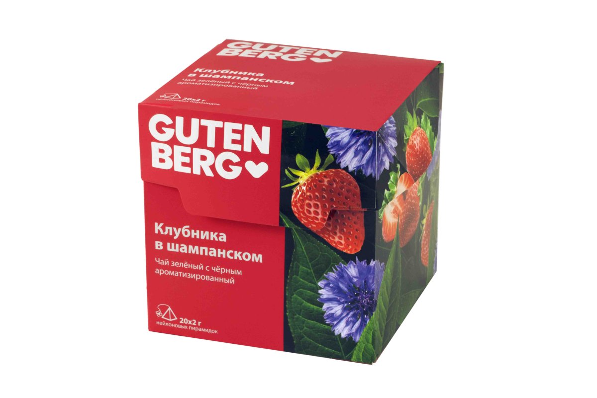 Чай Gutenberg зелёный с чёрным ароматизированный в пирамидках "Клубника в Шампанском" (кор. 20 шт.)