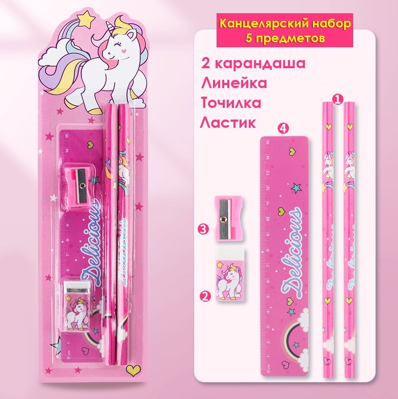 Детский канцелярский подарочный набор из 5 предметов 4 фото