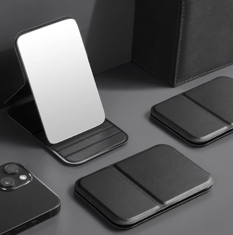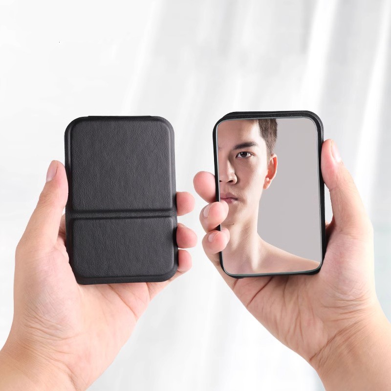 Зеркало карманное складное из экокожи, 10,5*7 см. 5 фото