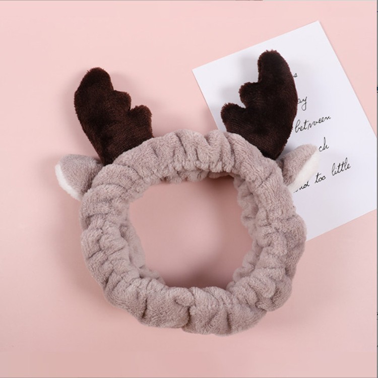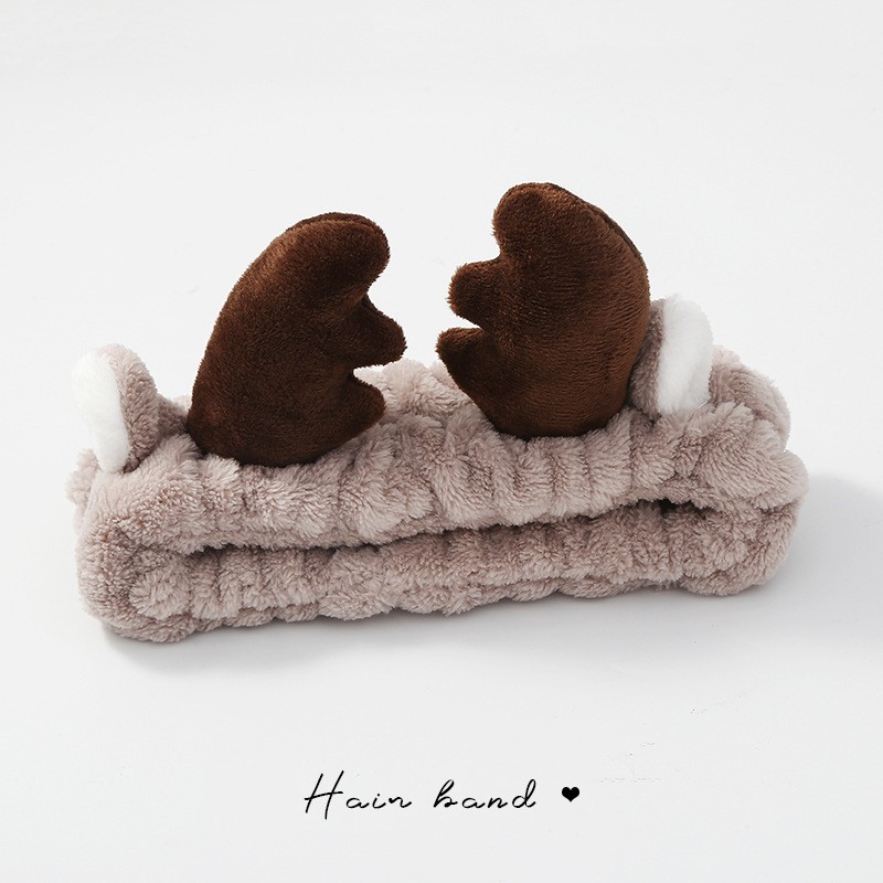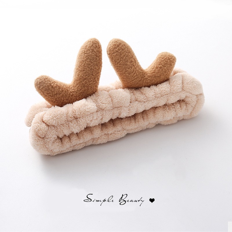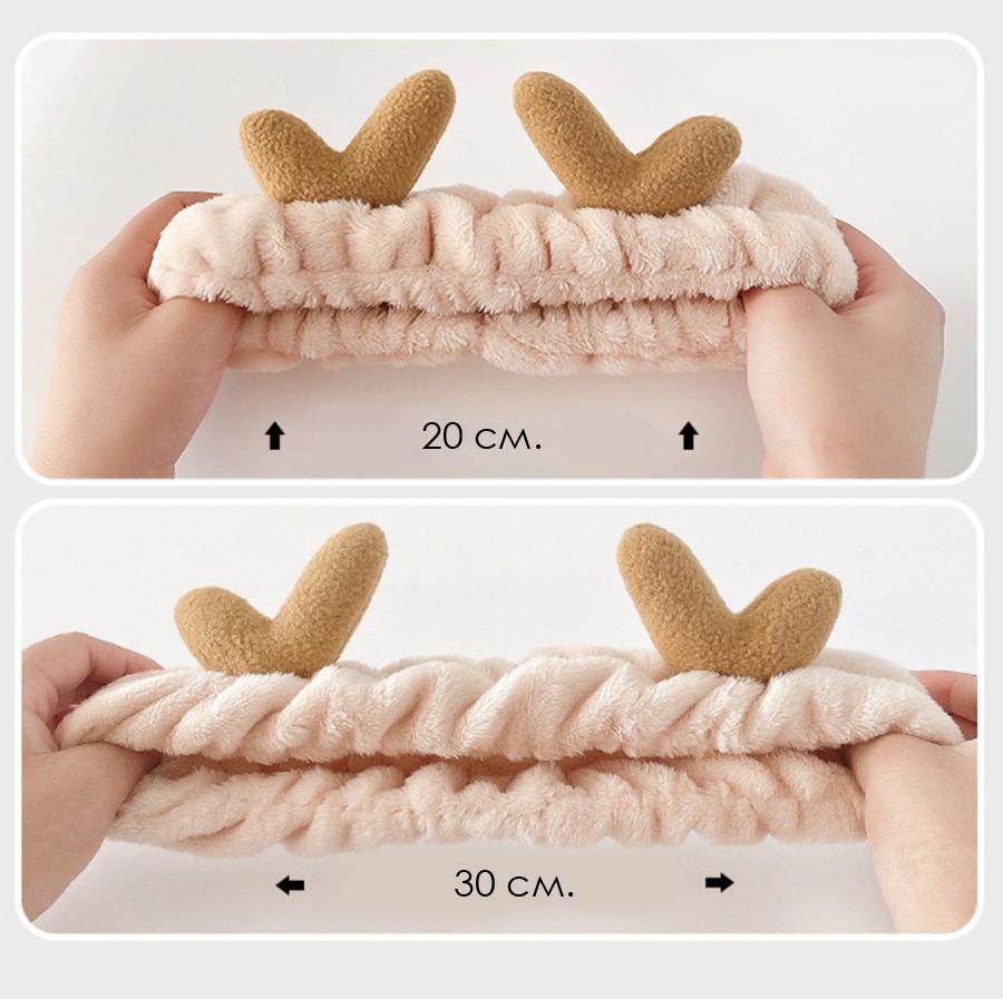 Повязка косметическая плюшевая Оленьи рожки, Цвет Бежевый 3 фото